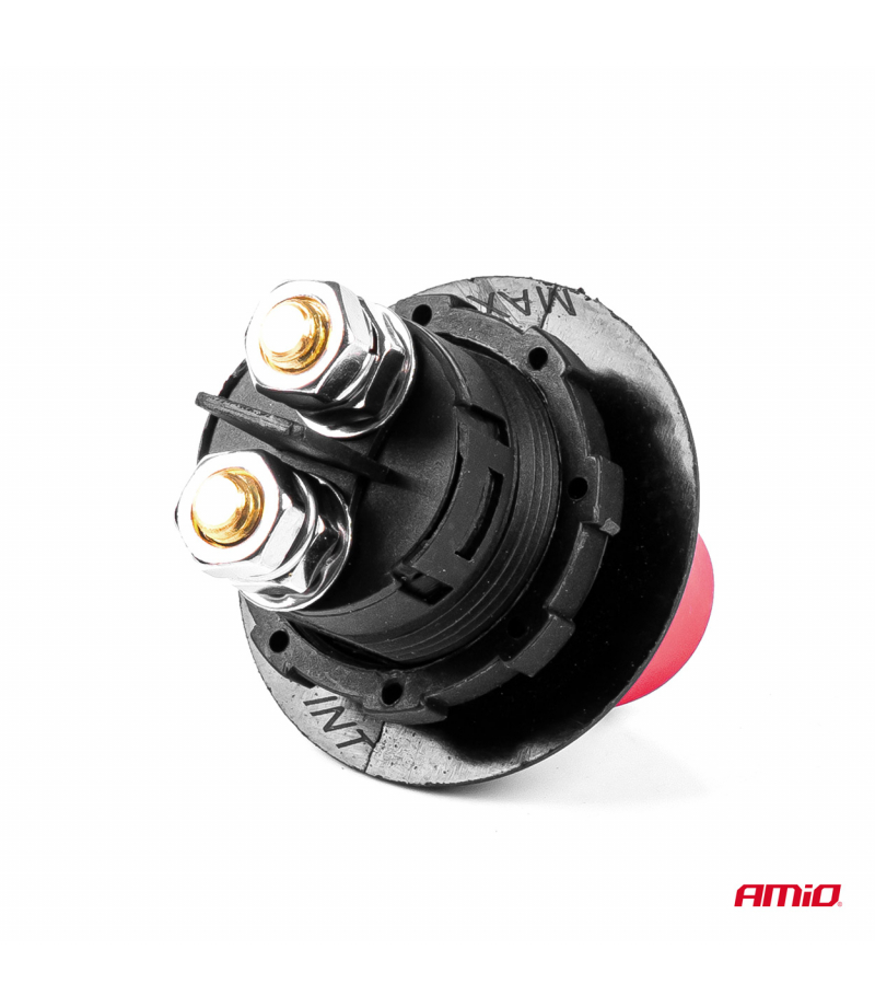 WYŁĄCZNIK ODŁĄCZNIK PRĄDU AKUMULATORA HEBEL PRĄD ROBOCZY 100A PRĄD CHWILOWY 150A PRĄD SZCZYTOWY 500A HEBEL RYGIEL 3-pozycyjny uniwersalny do wbudowania ON-OFF-OUT Średnica montażowa: 29mm Średnica zewnętrzna: 45mm Wysokość całkowita: 55mm Wysokość po zamontowaniu: 20mm Przyłącza elektryczne: M6 Napięcie: max 32V Zastosowanie w instalacji elektrycznej pojazdów osobowych, ciężarowych, maszynach rolniczych i budowlanych, przyczepach kempingowych, łodziach...