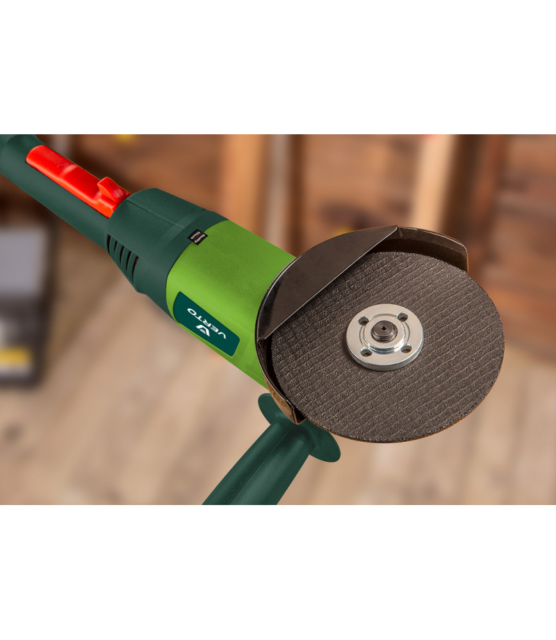 Szlifierka kątowa 1050 W Verto (nr. Ref. 51G098) z regulacją obrotów w zakresie 3000- 10500 obr./min. To mocna i solidna szlifierka kątowa o średnicy tarczy tnącej 125 mm, przeznaczona do cięcia oraz szlifowania materiałów takich jak np. stal, żeliwo. Posiada solidną, odporną na uszkodzenia przedłużoną obudowę oraz silnik o mocy 1050 W umożliwiający wykonywanie większości prac warsztatowych. Ergonomiczny kształt rękojeści zapewnia pewny i wygodny chwyt szlifierki podczas pracy. Maksymalne obroty 10500 obr./min. Dostarczana wraz ze stalową osłoną tarczy, kluczem specjalnym i dodatkową rękojeścią. Zgodność z europejskimi standardami bezpieczeństwa zapewnia certyfikat CE. Marka VERTO oferuje asortyment elektronarzędzi i akcesoriów dla każdego majsterkowicza.
