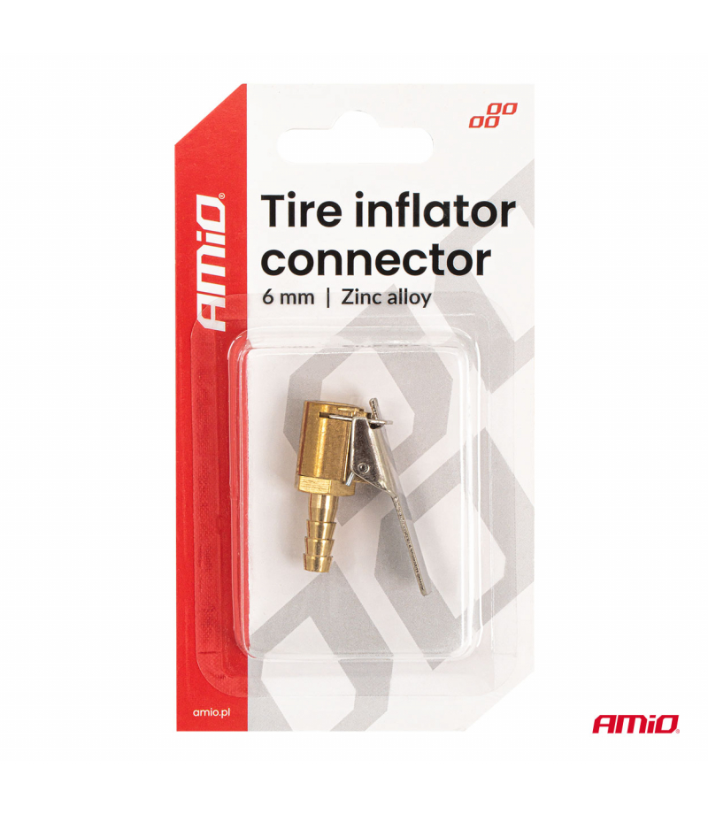 Adapter pneumatyczny wykonany z lekkiego i wytrzymałego stopu cynku. Przeznaczony do szybkiego podłączenia przewodu powietrznego o średnicy 6 mm do zaworu opony. Dedykowany do zastosowań serwisowych, warsztatowych i domowych.