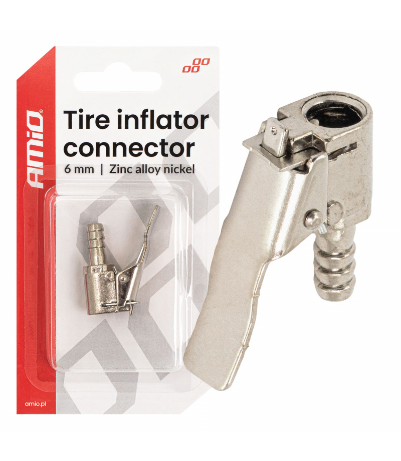 Kompaktowy adapter pneumatyczny wykonany z odpornego na korozję stopu cynku z powłoką niklowaną. Umożliwia szybkie i szczelne połączenie przewodu powietrznego o średnicy 6 mm z zaworem opony. Przeznaczony do użytku warsztatowego, serwisowego i przemysłowego.