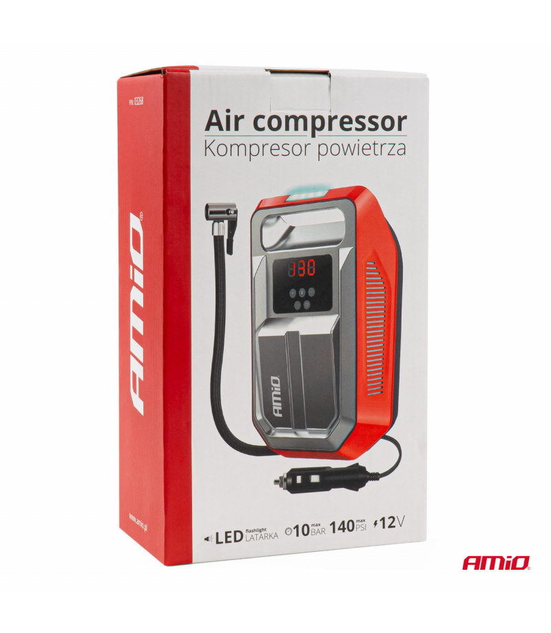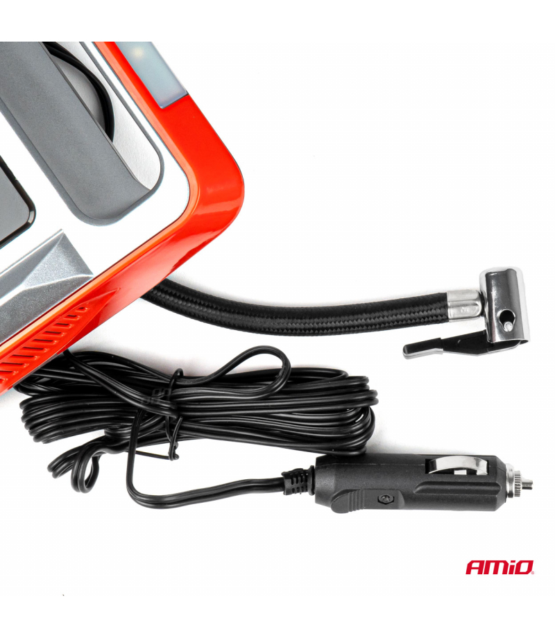 KOMPRESOR SAMOCHODOWY CYFROWY 25l/min Z LATARKĄ I WYŚWIETLACZEM LCD Produkt został stworzony do napełniania powietrzem opon oraz dętek w różnych pojazdach, takich jak samochody, rowery, motocykle, a także do pompowania materaców, pontonów i piłek. Dane techniczne: waga: 1.7 kg napięcie: 12V moc: 120 W wydajność: 25 l/min max. ciśnienie: 10 BAR / 1MPa / 140 PSI długość węża: 0.6 m długość przewodu zasilającego: 3 m...