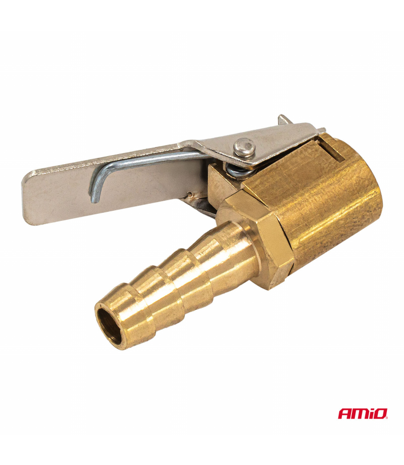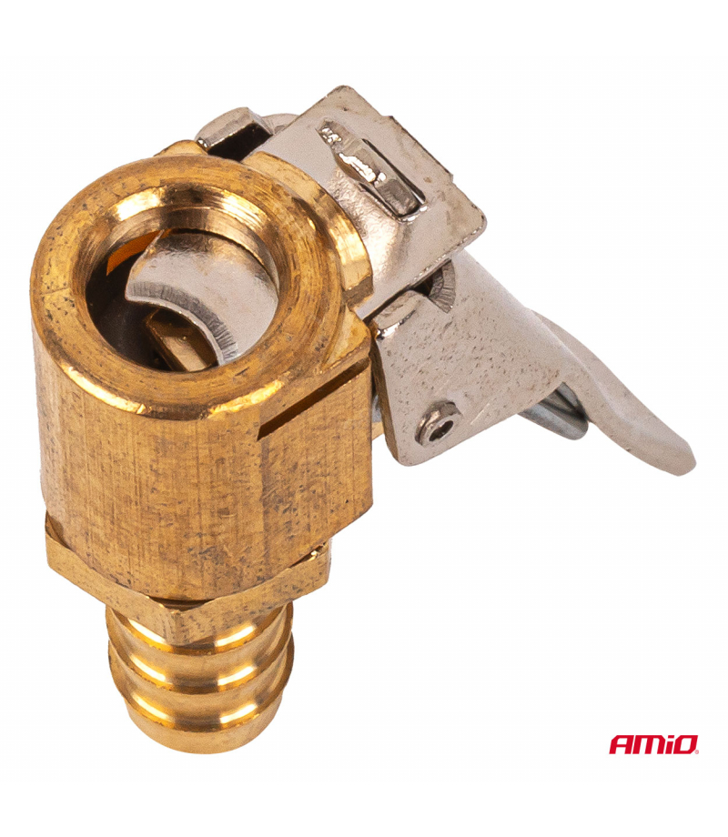 Mosiężna głowica do pompowania wentyli kół opon Schrader AMIO-04472 Mosiężna głowica do wentyli Schradera ¼" NPT to profesjonalne narzędzie przeznaczone do szybkiego i precyzyjnego pompowania opon w pojazdach osobowych, dostawczych i ciężarowych. Wykonana z trwałego mosiądzu, gwarantuje odporność na korozję i długą żywotność nawet w warunkach intensywnej pracy warsztatowej. Precyzyjne dopasowanie do zaworów Schradera zapewnia szczelność i wygodę podczas pompowania....
