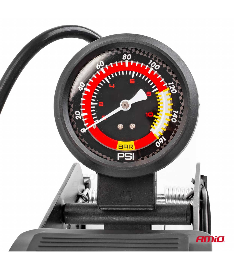 Czytelny manometr pokazujący w barach (0-11) oraz PSI (0-160) wskazuje poziom ciśnienia dzięki temu możesz idealnie napompować swoje urządzenie wg potrzeb