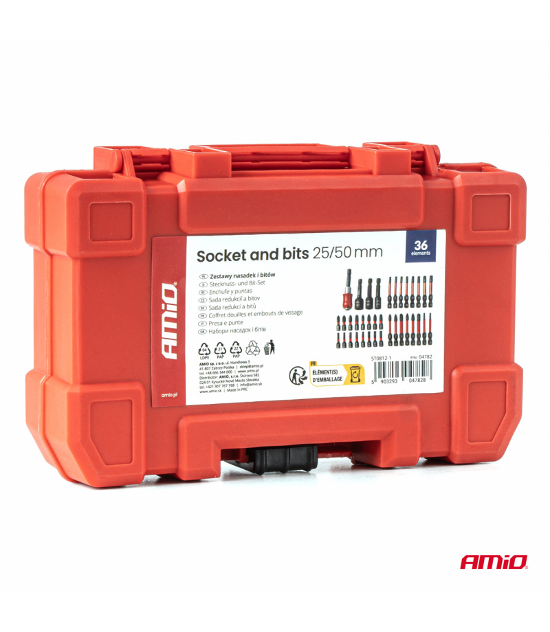 Zestawy nasadek i bitów 25/50mm 36 el. AMIO-04782 Kompleksowy zestaw nasadek i bitów przeznaczony do prac montażowych, serwisowych oraz warsztatowych. Zawiera bity o długościach 25 mm i 50 mm oraz nasadki, co pozwala na szeroki zakres zastosowań przy obsłudze różnego rodzaju połączeń śrubowych. Elementy wykonane z wysokiej jakości stali narzędziowej zapewniają odporność na ścieranie oraz długą żywotność nawet przy intensywnym użytkowaniu. Precyzyjne wykonanie gwarantuje dokładne dopasowanie...