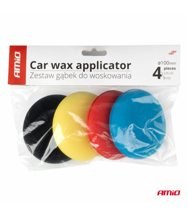 Zestaw czterech aplikatorów o średnicy 10 cm. do różnych zastosowań. Przeznaczone do nakładania środków detailingu samochodowego, polerowania czy usuwania nadmiaru.