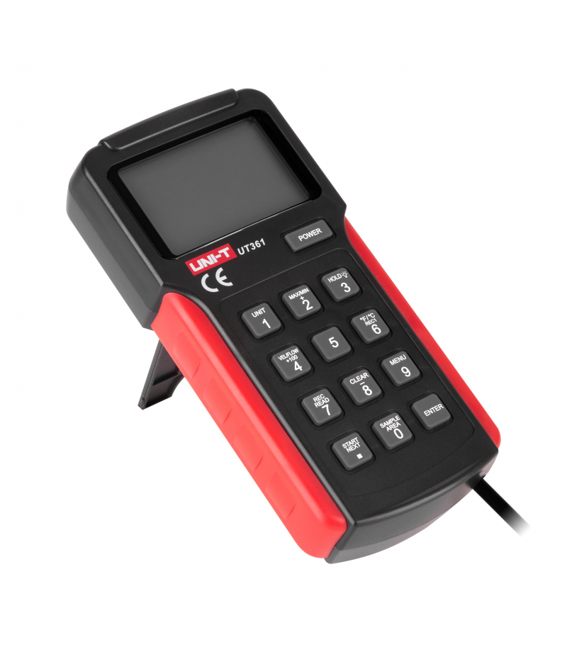 Miernik UT361 ma kompaktowe wymiary 162 x 78 x 30 mm i waży 375 g, co zapewnia komfortową obsługę i mobilność. Zasilany baterią 9 V (6F22) oraz wyposażony w podświetlany wyświetlacz o rozmiarze 57 x 37 mm, wiatromierz jest praktyczny w użyciu w różnych warunkach oświetleniowych. W zestawie znajduje się bateria oraz etui, co zapewnia gotowość do pracy zaraz po zakupie.
