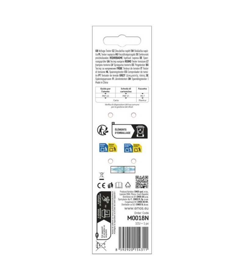 Napięcie stałe: 0 do 250 V bezstykowo Napięcie stałe i zmienne: 0–250 V, 70–250 V Napięcie zmienne: 70 do 250 V bezstykowo Określenie fazy: nie Określenie polaryzacji: tak Opakowanie: 1 szt., zawieszka Pomiar ciągłości obwodów: nie Pomiary bezkontaktowe: polaryzacja zasilaczy, zwarć, promieniowania kuchenek mikrofalowych, monitorów Sygnalizacja: optyczna Ustawienie dwóch czułości: nie Zakres częstotliwości: 0–60 Hz Zasilanie: 2× 1,5 V LR41 (w zestawie) Więcej szczegółów