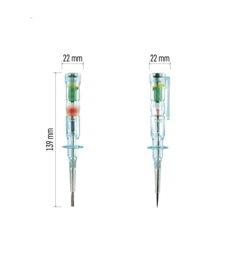 Napięcie stałe: 0 do 250 V bezstykowo Napięcie stałe i zmienne: 0–250 V, 70–250 V Napięcie zmienne: 70 do 250 V bezstykowo Określenie fazy: nie Określenie polaryzacji: tak Opakowanie: 1 szt., zawieszka Pomiar ciągłości obwodów: nie Pomiary bezkontaktowe: polaryzacja zasilaczy, zwarć,...