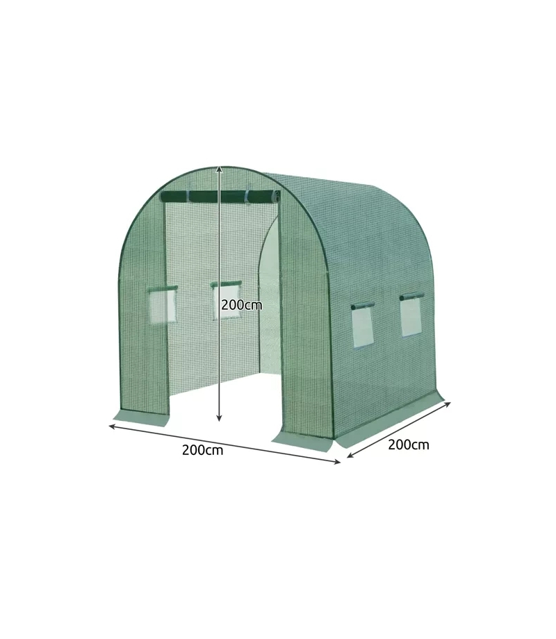 Mocna oraz odporna na rozciąganie folia wykonana jest z PE z wtopioną siatką. Przeznaczona jest do tunelu ogrodowego o wymiarach 2 x 2 x 2 m. Jej montaż jest bardzo łatwy, należy jak najdokładniej dopasować pokrycie foliowe do stalowego stelażu, dzięki czemu folia będzie idealnie napięta, eliminując negatywne oddziaływanie silnego wiatru, deszczu i słońca. Folia do tunelu podsiada dwa mocne błyskawiczne zamki. Istnieje także możliwość podwinięcia wejścia i zapięcia na zatrzask. Boczne okna wyposażone zostały w moskitiery, dzięki którym w tunelu będzie panować odpowiednia wilgotność i prawidłowa cyrkulacja powietrza. Boczny kołnierz do stabilizacji należy przysypać ziemią lub obłożyć kamieniami. Pozwoli to na zabezpieczenie tunelu przez podwianiem folii przez wiatr. Ogrodniczy tunel foliowy wydłuża sezon uprawy warzyw od przedwiośnia do późnej jesieni. Daje doskonałe efekty w uprawie warzyw ciepłolubnych, takich jak np. pomidory. Praktyczne i tanie rozwiązanie do zastosowania w przydomowych ogródkach.