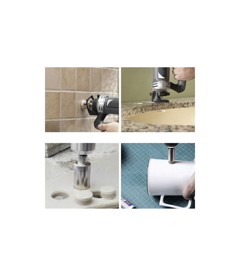 ZESTAW 10 OTWORNIC DIAMENTOWYCH 6, 8, 10, 16, 20, 28, 35, 45, 50 i 68 mm DO GRESU, SZKŁA, PŁYTEK itp. 10 ROZMIARÓW W 1 – w zestawie jest 10 sztuk otwornic. Każda posiada inny rozmiar: 6, 8, 10, 16, 20, 28, 35, 45, 50 i 68 mm. 6 mm, 8 mm, 10 mm służą do nawiercania otworów pod kołki rozporowe: 16 mm na większe kotwy i pręty gwintowane; 20 mm i 28 mm wykona otwory pod rurki c.w.o i c.o. jak grzejniki; 35 mm, 45 mm, 50 mm to idealne średnice pod podejścia wody i kanalizacji; 68...