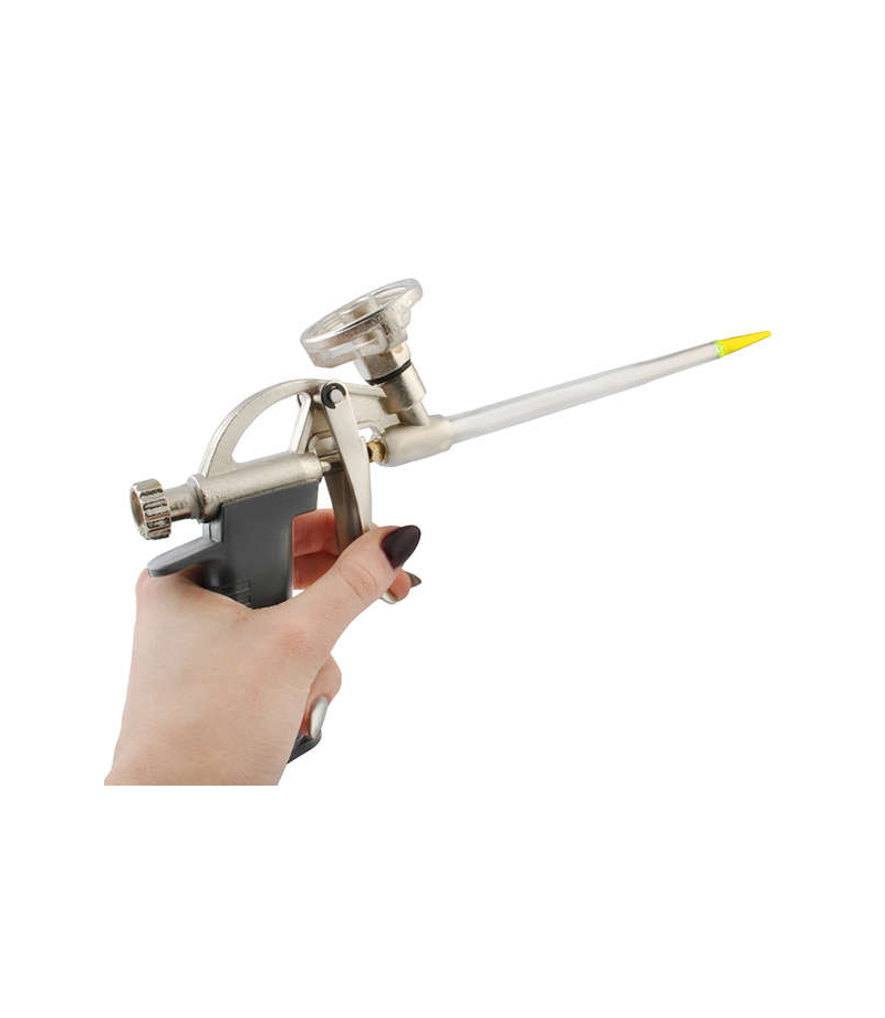 PISTOLET DO PIANKI MONTAŻOWEJ METALOWY KORPUS – struktura głównej części narzędzia wykonana jest z metalu, dzięki czemu całość jest trwała i łatwa w użytkowaniu. PLASTIKOWA RĘKOJEŚĆ – specjalnie profilowany uchwyt z tworzywa sztucznego gwarantuje stabilne trzymanie narzędzia w ręce, co ma znaczący wpływ na precyzyjne użycie piany, szczególnie w miejscach trudno dostępnych. POKRĘTŁO REGULACYJNE – łatwo dostępne pokrętło regulacyjne umożliwia bieżące kontrolowanie...