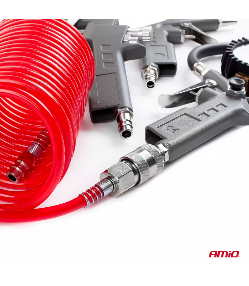 Profesjonalny zestaw pneumatycznych narzędzi lakierniczych do malowania, lakierowania, przedmuchiwania, ropowania i pompowania W skład zestawu, który umożliwi praktycznie większość prac kompresorem znajduje się: Pistolet do malowania Pistolet do pompowania Pistolet do przedmuchiwania Długi pomarańczowy wąż pneumatyczny do podłączania akcesorii Smarownica / Olejarka Komplet przedłużek akcesorii i końcówek do pompowania rowerów, piłek, materacy,...