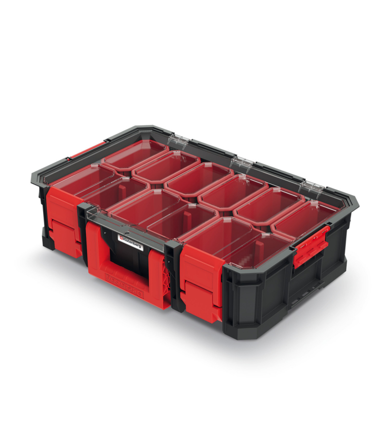 Skrzynia narzędziowa - organizer KISTENBERG MODULAR SOLUTION 15 KMS553515B. Wyposażony w 9 wyjmowanych kubeczków do aranżacji przestrzeni wewnętrznej. Zapięcia z ABS oraz metalowe zawiasy. Wymiary: 517 x 331 x 134 mm. Ładowność do 20 kg. Kompatybilność z: MODULAR SOLUTION, MSX, z platformą KXBP6045.