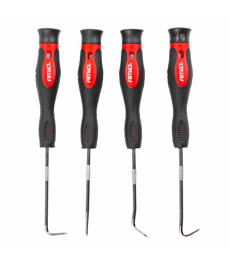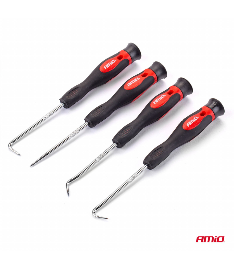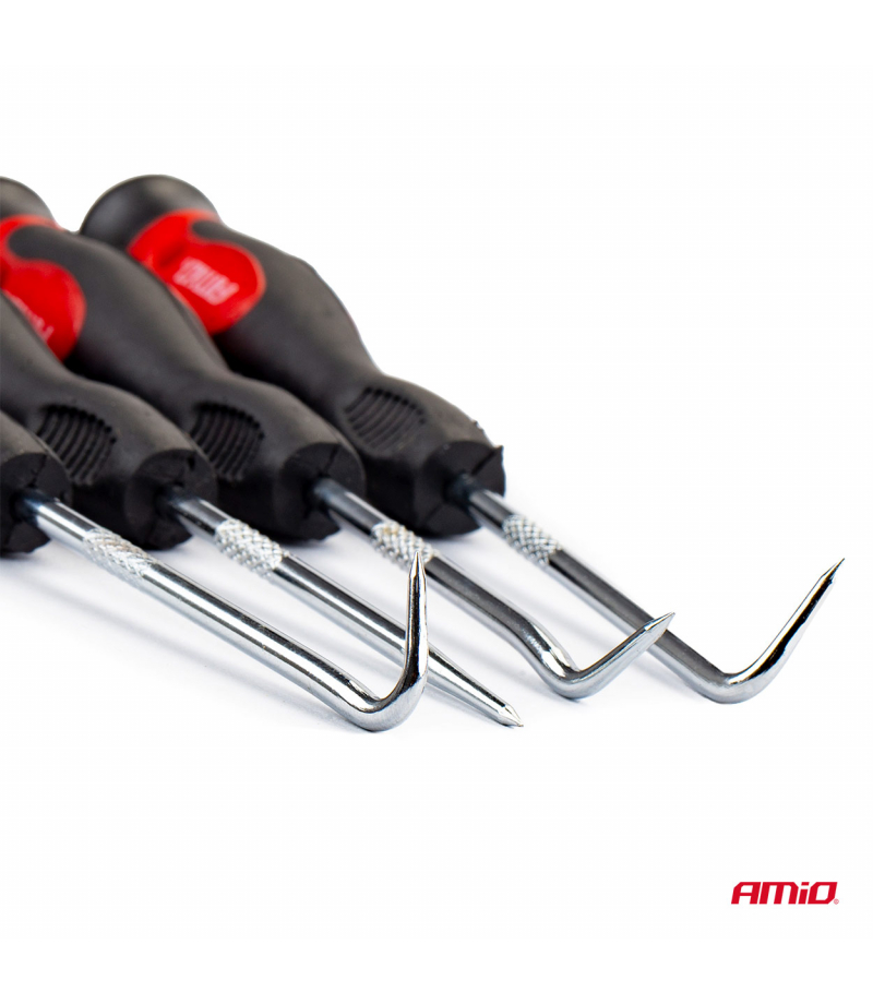 Zestaw haczyków z rękojeścią. Haczyki posiadają hartowane i chromowane groty. Rękojeść wykonana z wysokogatunkowego antypoślizgowego materiału. Zestaw został wykonany z wysokiej jakości materiałów.