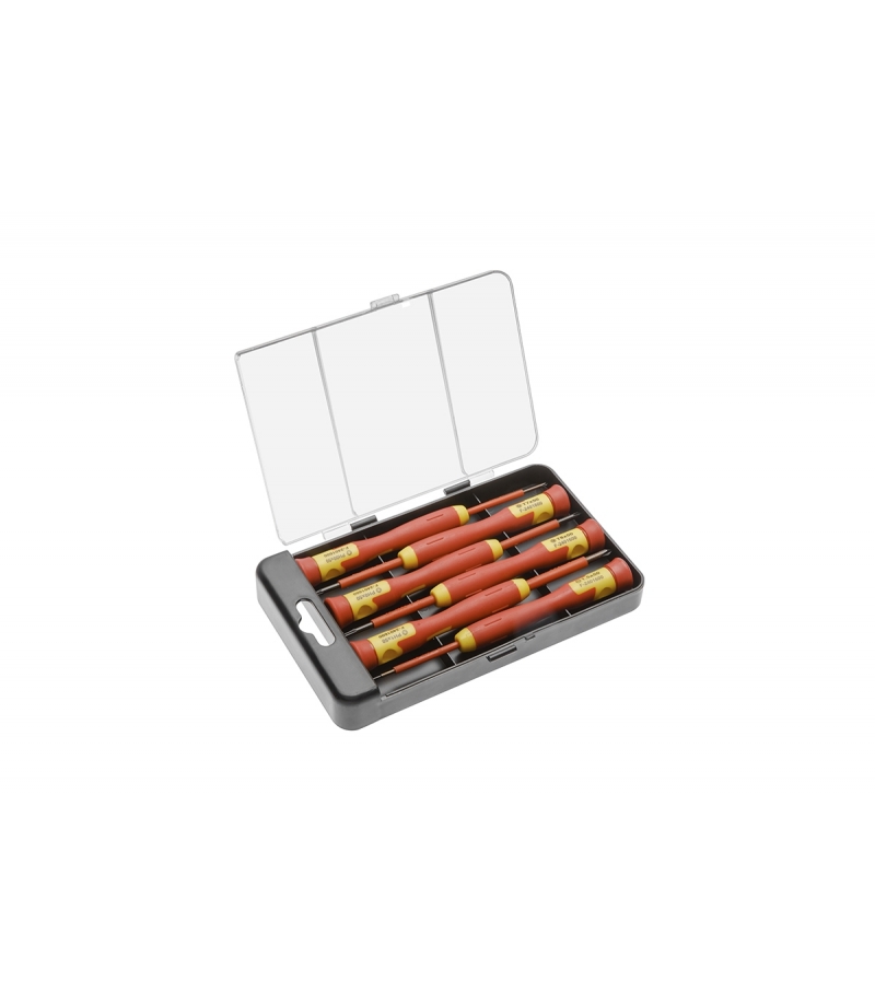Zestaw wkrętaków precyzyjnych 1000 V atestowanych do pracy pod napięciem.