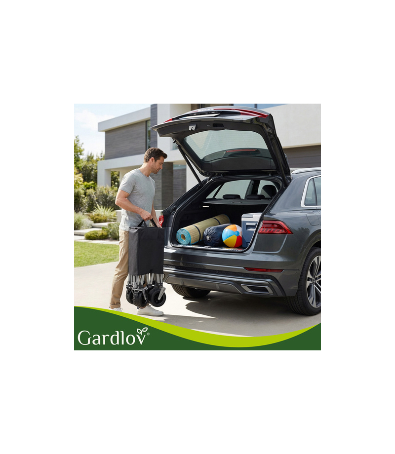 Wózek transportowy Gardlov to niezastąpione wsparcie w ogrodzie, na plaży, campingu i działce. Wyjątkowo duża pojemność 150 litrów, potężny udźwig aż do 200 kg oraz składana, wodoodporna konstrukcja sprawiają, że bez wysiłku przewieziesz ciężkie i nieporęczne rzeczy . Solidne materiały i terenowe koła gwarantują komfort użytkowania na różnych nawierzchniach i w każdych warunkach.