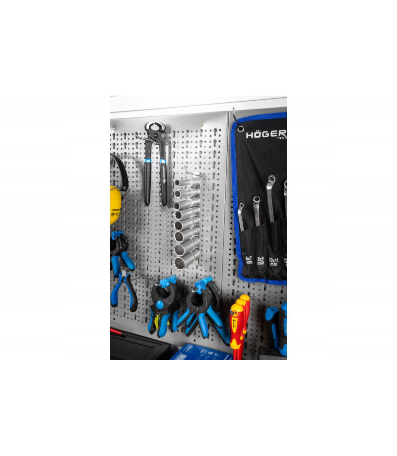 Zestaw kluczy nasadowych 12-kątnych długich1/2", 8 szt. Zestaw nasadek umożliwia pracę ze śrubami i nakrętkami o dwunastokątnym kształcie łba. Wydłużony kształt pozwala na dotarcie do głęboko osadzonych łbów śrub i nakrętek. Wykonane zostały z odpornej na odkształcanie i uszkodzenia stali CrV, pokrytej satynową powłoką chromową, dodatkowo zabezpieczającą narzędzie przed rdzą. Kucie narzędzia na zimno, zwiększa wytrzymałość nasadki na obciążenia....
