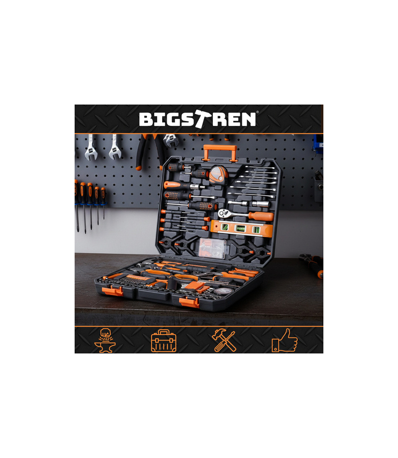 Zestaw Bigstren 168 el. zapewnia wszystkie najważniejsze narzędzia w jednej, poręcznej walizce. W środku znajdują się klucze, nasadki, bity, wkrętaki, szczypce i akcesoria, które pozwalają wykonać naprawy domowe, montaż mebli, prace samochodowe czy szybkie serwisowanie sprzętu. Każdy element ma swoje miejsce w wytłoczce, co ułatwia zachowanie porządku. To praktyczny i wszechstronny zestaw dla majsterkowiczów i użytkowników, którzy chcą mieć komplet narzędzi zawsze pod ręką.