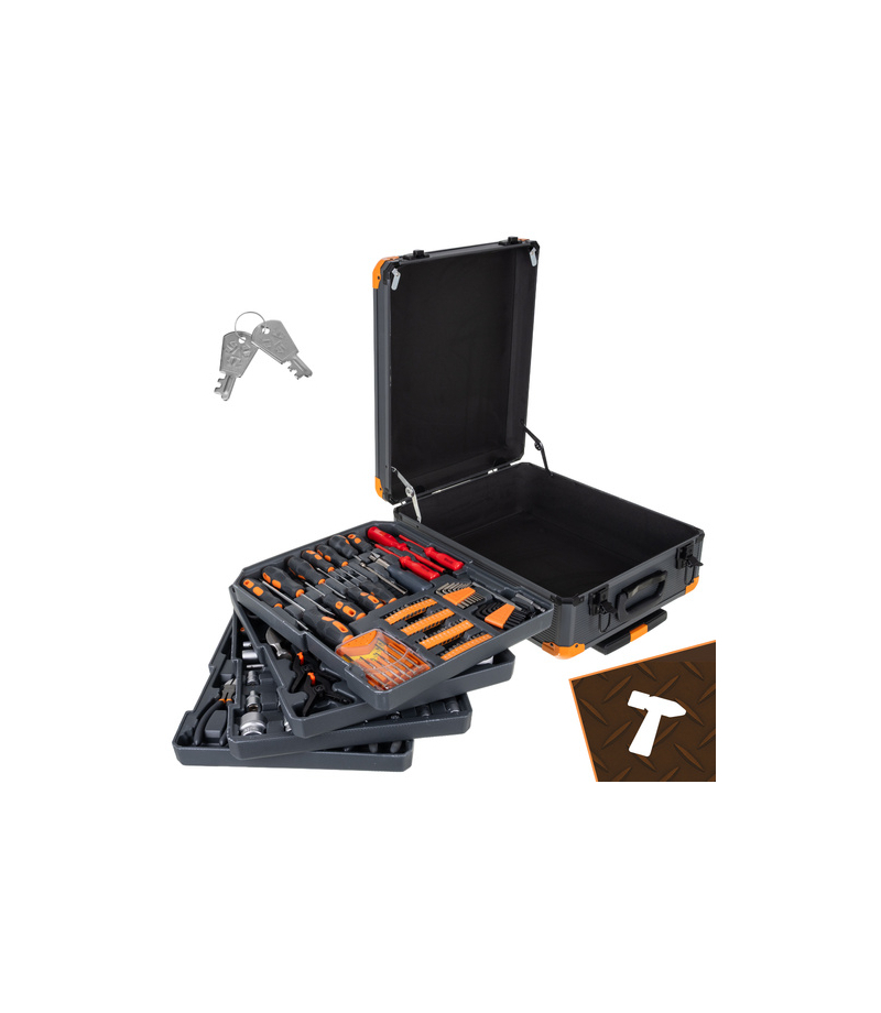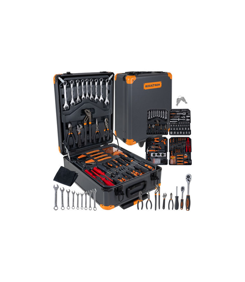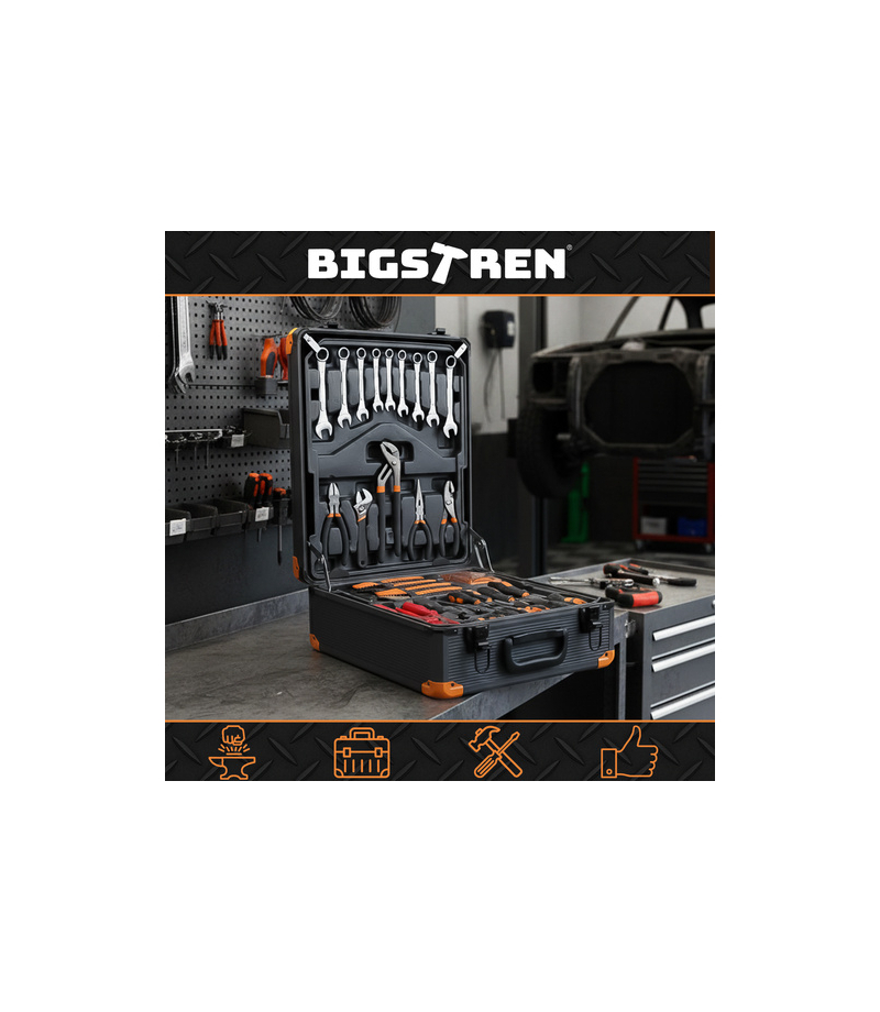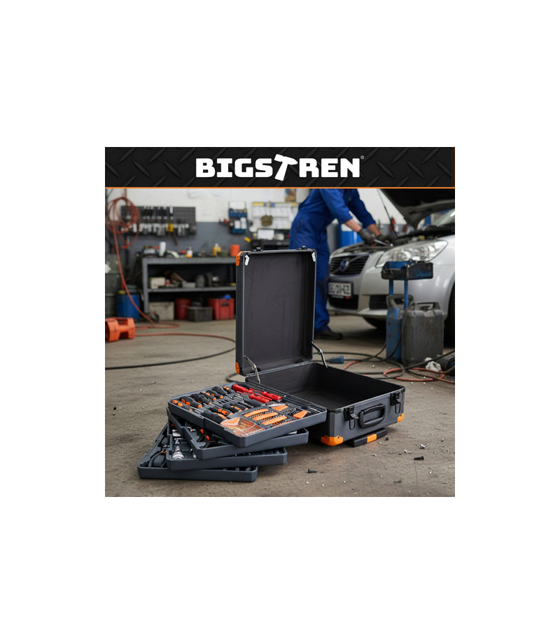 Zestaw Bigstren 1000 el. to jeden z najbardziej rozbudowanych kompletów narzędziowych dostępnych na rynku. W aluminiowej walizce znajdują się cztery wyjmowane organizery wypełnione kluczami, nasadkami, bitami, wkrętakami, szczypcami oraz akcesoriami montażowymi. Zestaw został zaprojektowany tak, aby zapewnić pełną mobilność, porządek i możliwość wykonania praktycznie każdej naprawy. Walizka posiada kółka, teleskopowy uchwyt oraz metalowe zamknięcia na kluczyk, dzięki czemu świetnie sprawdza się w domu, garażu, warsztacie i pracy mobilnej.