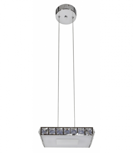 Niewielki choć niezwykle efektowny zwis LED-owy zawieszony na metalowych linkach umożliwających regulację wysokości; transparentne kryształki po obwodzie; od spodu klosz szklany z efektem rozgwieżdżonego nieba, mocowany chromowaną płytką w kształcie klosza Więcej szczegółów