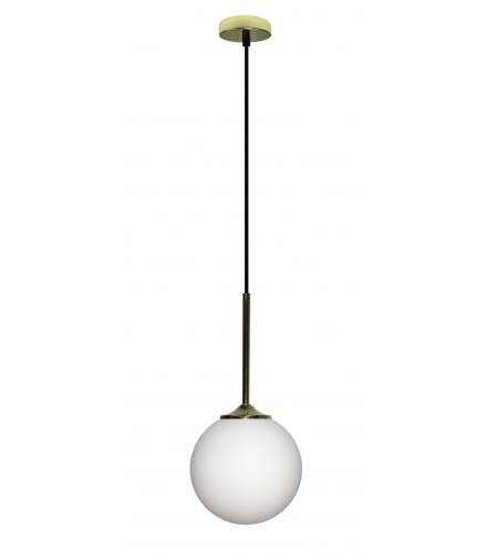 Seria sześciu klasycznych lamp wiszących wykonanych z metalu, z białym kloszem w kształcie kuli. Lampy występują w dwóch wariantach kolorystycznych: czarnym i złotym oraz w trzech rozmiarach klosza. Produkty doskonale nadają się do pomieszczeń takich jak: salon, jadalnia, kuchnia, sypialnia, gabinet. Dzięki różnym wielkościom klosza lampy można ze sobą ciekawie komponować w jednym pomieszczeniu. Lampa wisząca o wielkości klosza 150mm z jednym punktem świetlnym. Żarówka nie jest dołączana do produktów z zewnętrznym źródłem światła.