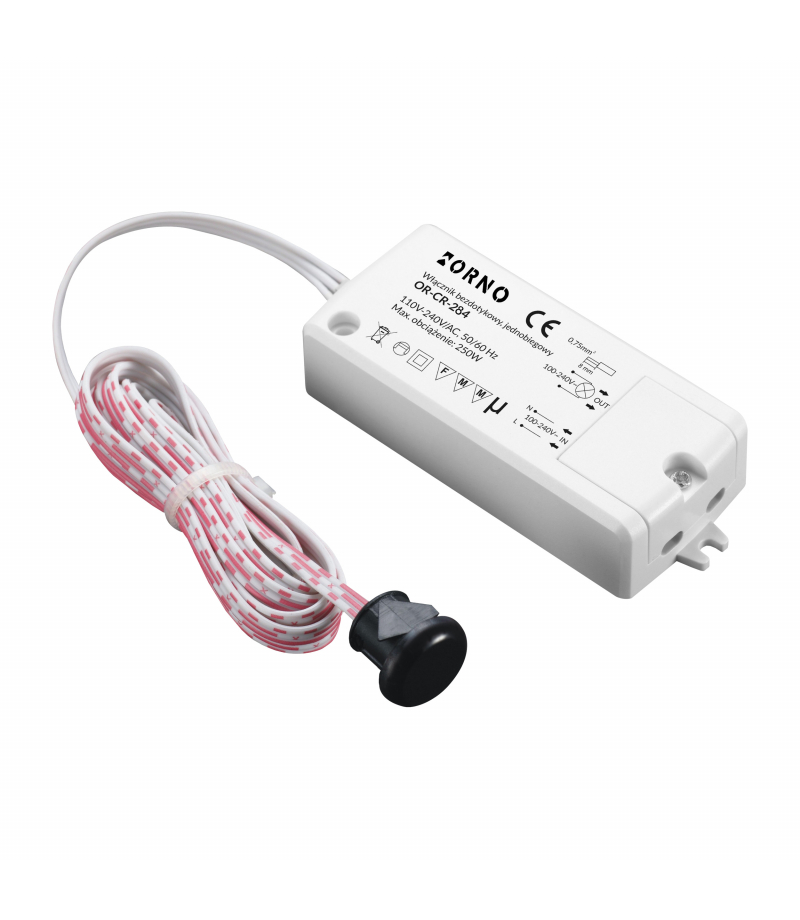 Włącznik bezdotykowy, jednobiegunowy, IP20, 250W Orno OR-CR-284 Bezdotykowy włącznik jednobiegunowy to nowoczesne i wygodne rozwiązanie, które umożliwia sterowanie oświetleniem bez konieczności fizycznego kontaktu. Dzięki funkcji zbliżeniowej reaguje na ruch w maksymalnym zasięgu do 5 cm na wprost. Urządzenie cechuje się wysoką precyzją, wykrywając ruch z szybkością od 0,6 do 1,5 m/s. Wyposażone w wyjście przekaźnikowe, obsługuje napięcie znamionowe 230V AC. Maksymalna moc łączeniowa...