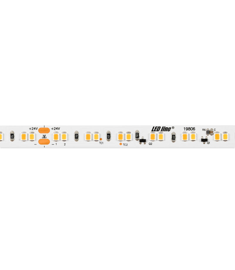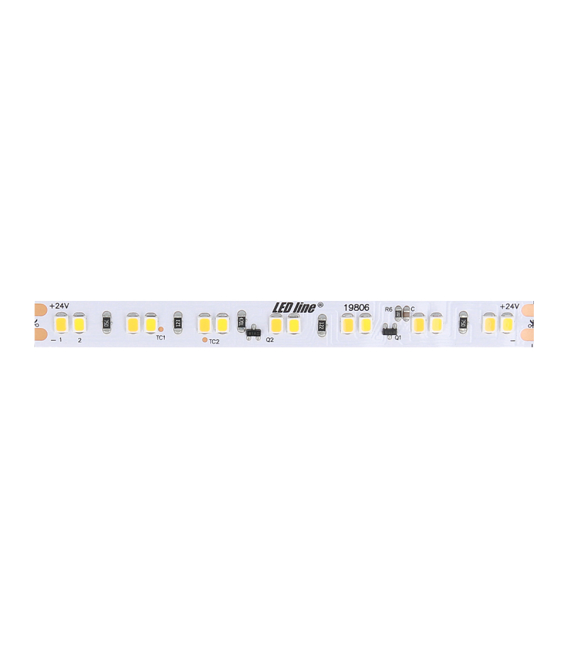Taśma LED przeznaczona do specjalistycznych zastosowań oświetleniowych. Temperatura barwy światła to: 2200-3000 K Długość fali Taśma jest dostarczana na rolce o długości m. W produkcie zastosowano diodę typu SMD2835. Taśma ta o poborze prądu 0,5 A osiąga skuteczność świetlną lm/W przy zachowaniu poboru mocy 12 W na metr. Strumień świetlny emitowany z jednego metra taśmy wynosi lm. Taśma LED jest zasilana stałym napięciem 24V DC. Kąt świecenia diody wynosi 120 °. Grubość laminatu PCB taśmy wynosi: 2.