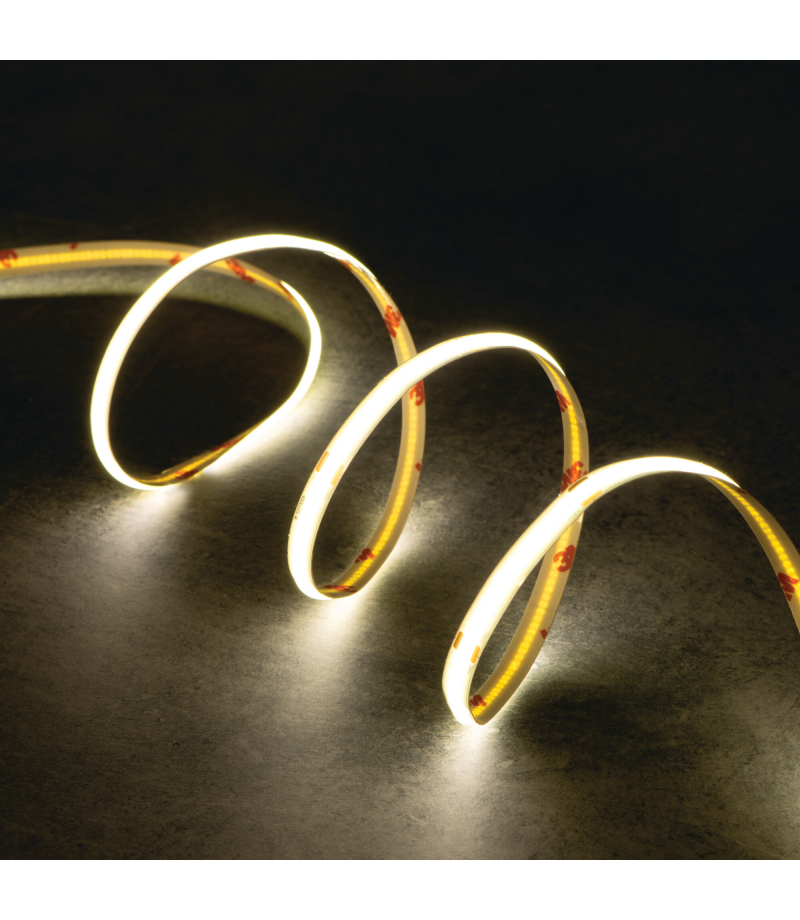 Taśma LEDowa Kanlux LCOB to wyjątkowe oświetlenie, które ma wysoką skuteczność świetlną i 3 lata gwarancji. Jej unikatową cechą jest równomierne świecenie na całej długości taśmy — nie ma na niej jaśniejszych lub ciemniejszych miejsc, nie widać punktów świetlnych. Taśma Kanlux LCOB emituje równomierne światło niezależnie od głębokości profilu i przeźroczystości klosza.
