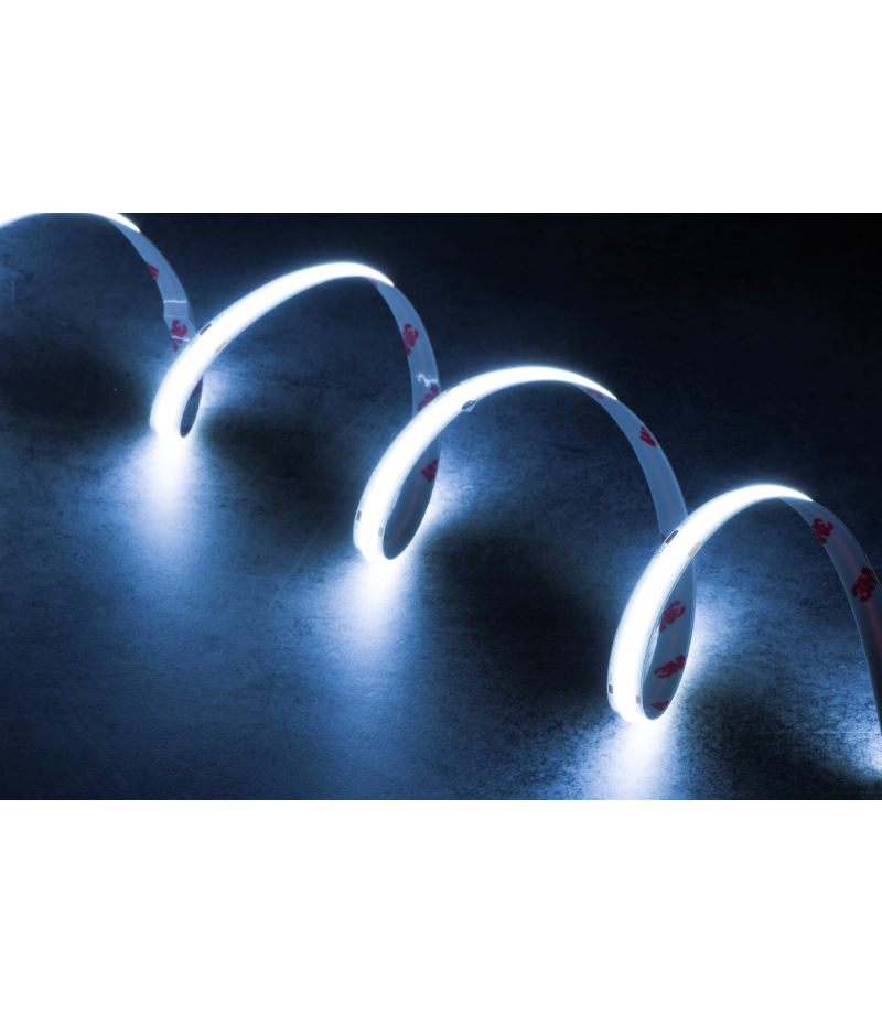 Taśmy LED Kanlux LCOB 14,4W/m to wydajne rozwiązanie o wysokiej skuteczności świetlnej, sięgającej nawet 146 lm/W na 1m. Oznacza to więcej światła przy mniejszym zużyciu energii, co czyni je idealnym wyborem do projektów wymagających efektywności i oszczędności. Dostępne są w sześciu wariantach – IP00 do wnętrz i IP65 o podwyższonej odporności, w trzech barwach światła: 3000K, 4000K i 6500K. Dzięki gęstemu rozmieszczeniu diod (480 diod/m) taśmy generują równomierną, jednolitą linię światła o wysokiej jakości odwzorowania barw (CRI ≥90). Trwałość 30 000 godzin oraz 3-letnia gwarancja potwierdzają niezawodność tego rozwiązania.