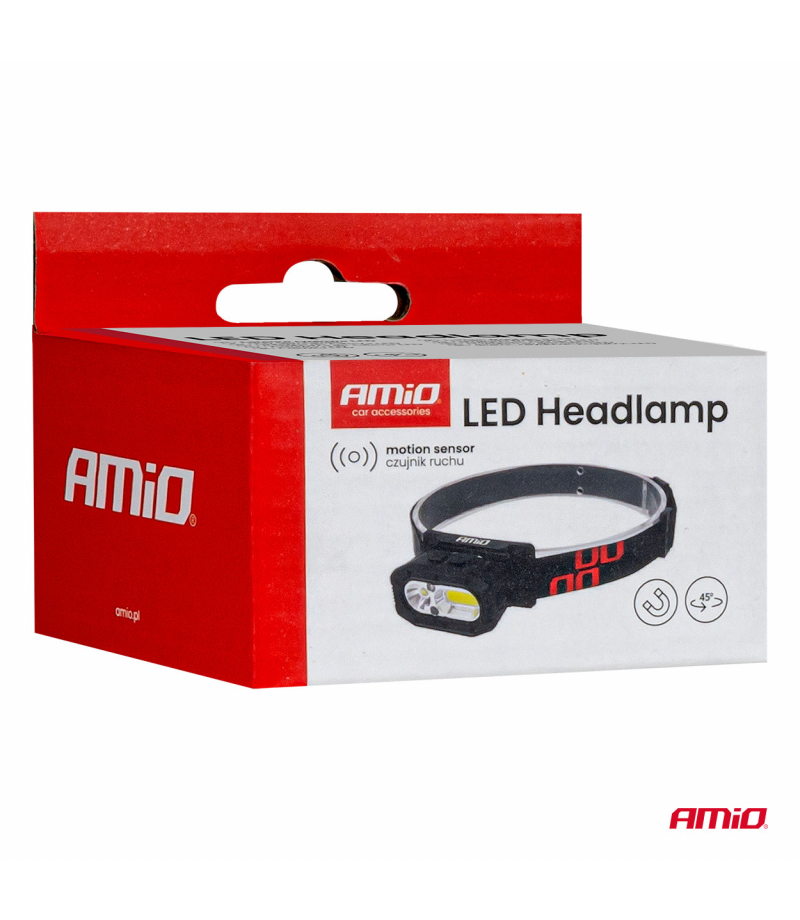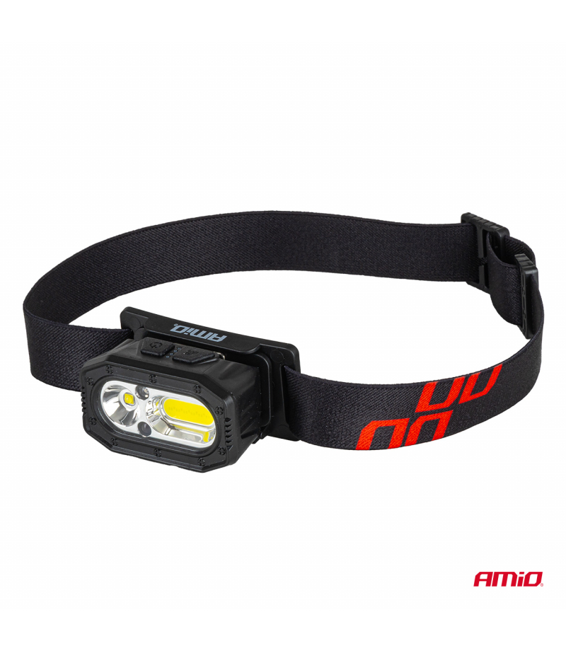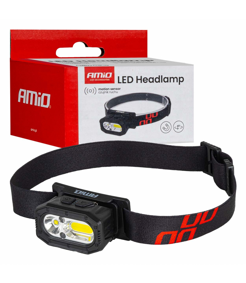 Latarka czołowa akumulatorowa z czujnikiem ruchu XPG+COB 1000mAh (BATT) AMIO-04663 Lekka i funkcjonalna latarka czołowa wykonana z wytrzymałego ABS , idealna do turystyki, biegania, prac domowych, survivalu i awaryjnych sytuacji. Wyposażona w nowoczesne źródła światła XPG + COB , oferuje zarówno mocny, punktowy strumień, jak i szerokie, równomierne oświetlenie....
