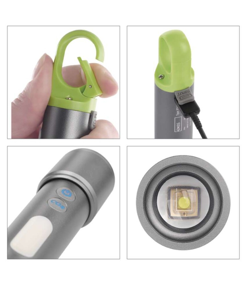 Latarka metalowa LED 600 lm, ładowalna, dyfuzory kolorowe EMOS P3118 Baterie wchodzą w skład kompletu: tak Czas ładowania: 4 godz. Czas świecenia: 1–11 godz. Czas świecenia detal: SMD LED 100 % – 1 godz., SMD LED 30 % – 3 godz., COB LED 30 % – 11 godz., COB LED 100 % – 2,5 godz. Funkcje dodatkowe: funkcja szybkiego wyłączania, funkcja ochrony akumulatora Ilość trybów świecenia: 8 Kolor: szaro-zielona ładowalna: tak Maksymalny...