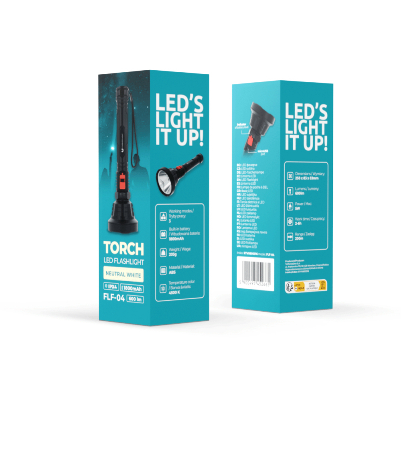 Latarka ręczna LED TORCH 1800mAh 600lm FLF-04 Forever Light RTV0800016 FLF-04 TORCH to latarka o dużym zasięgu, odpowiednia dla ochrony, oraz do każdego domu lub garażu.Długi uchwyt i pasek na nadgarstek doskonale sprawdzą się podczas przerw w dostawie prądu lub podczas patrolu. Ta funkcjonalna latarka będzie bardzo przydatna w sytuacjach awaryjnych. Dołączony pasek na nadgarstek pozwala zawiesić latarkę na nadgarstku, dzięki czemu można swobodnie używać rąk i uniknąć...