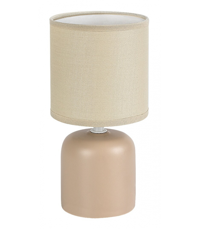 Lampa stołowa Rabalux Daphni polecana jest osobom poszukującym niewielkiej, eleganckiej lampy uzupełniającej do salonu lub sypialni. Ten model o czystym, prostym designie można ustawić na stoliku nocnym, małym stoliku lub nawet na półce. Cylindryczna oprawa wykonana jest z beżowej ceramiki, a abażur z tkaniny w tym samym kolorze. Abażur ma cylindryczny kształt i jest otwarty u góry i u dołu. Dzięki kolorystyce i formie lampa przepuszcza stosunkowo dużo światła, co daje jaśniejszy efekt. Lampa stołowa może być używana z jedną żarówką o mocy do 40 W. Typ trzonka: E14. Można wybrać źródło światła emitujące ciepłe lub naturalne białe światło. Ceramiczna lampka nocna obsługiwana jest za pomocą wyłącznika na kablu. Dostarczana jest bez źródła światła.
