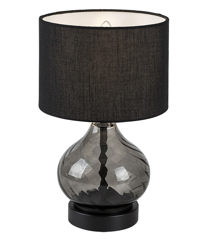 Lampa stołowa Rabalux Pirelo jest polecana dla osób, które lubią eleganckie modele o unikalnym designie. Korpus dekoracyjnej lampy jest wykonany z dymionego szkła z zakręconym wzorem, w kształcie cebulowej kopuły. Klosz jest cylindryczny, otwarty u góry i u dołu, wykonany z czarnego materiału tekstylnego. Lampę uzupełnia okrągła dekoracyjna podstawa, której kolor harmonizuje z resztą lampy. Ten elegancki model jest idealny do salonu lub sypialni, gdzie, umieszczony na stole lub stoliku nocnym, stanowi również doskonały element dekoracyjny. Lampa jest obsługiwana za pomocą przełącznika na kablu i może być używana z jedną żarówką o mocy do 25 W. Typ gniazda to E14. Można wybrać żarówkę emitującą ciepłe lub naturalne białe światło. Ten model jest dostarczany bez źródła światła.