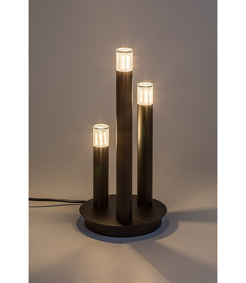 Lampa stołowa Rabalux Ramira jest idealnym wyborem dla osób, które preferują unikalny design oraz uniwersalne, łatwe do przenoszenia modele. Lampa wykonana jest z metalu w eleganckim czarnym kolorze, a na szczycie głowic lamp znajdują się przezroczyste akrylowe abażury. Dekoracyjna podstawa ma okrągły kształt i składa się z trzech cylindrycznych elementów lamp o różnych wysokościach, przypominających świece. Ta designerska lampa stołowa może być umieszczona w różnych pomieszczeniach w nowoczesnym domu: może stanowić stylowy dodatek do salonu, kuchni, jadalni lub sypialni. Lampa jest obsługiwana za pomocą przełącznika na kablu i może być używana z trzema źródłami światła, z których każde ma moc do 5 W. Typ gniazda to G9. Można wybrać żarówki emitujące ciepłe lub naturalne białe światło. Lampa jest dostarczana bez źródeł światła.