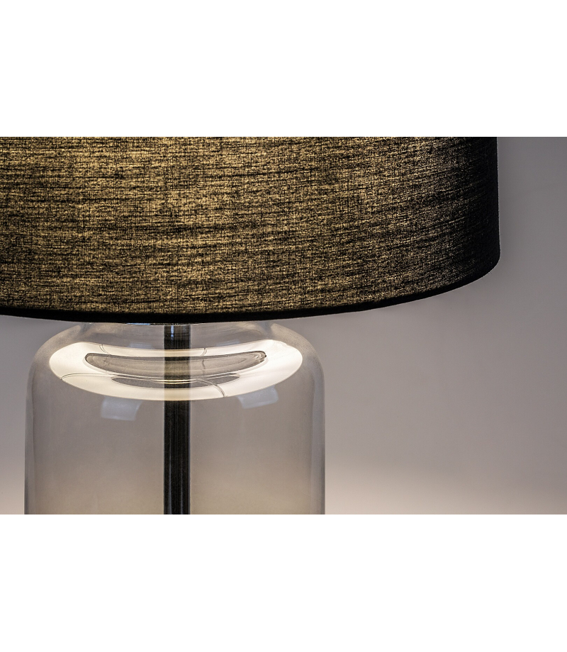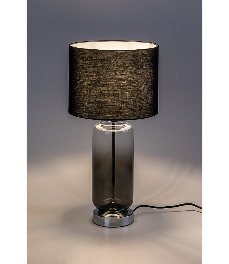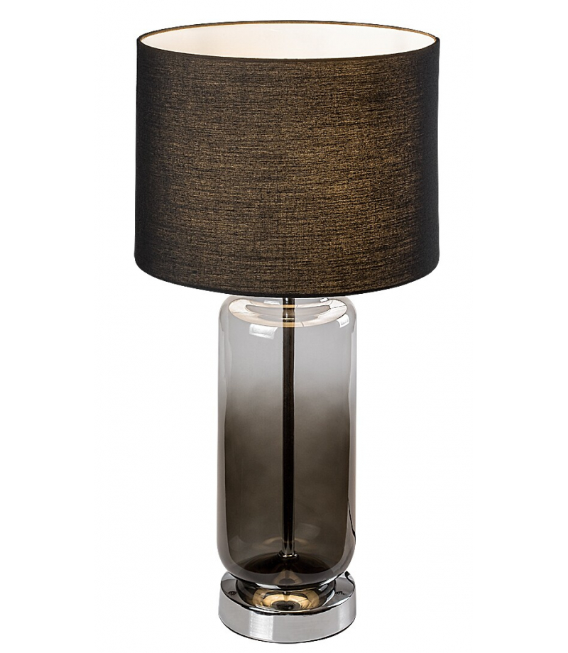 Lampa stołowa Rabalux Rien polecana jest osobom poszukującym lampy uzupełniającej o stonowanym wyglądzie, ale unikalnym designie. Idealnie sprawdzi się w sypialni lub salonie – ustawiona na stoliku nocnym lub na stole. Oprawa wykonana jest z barwionego szkła i ma smukły, cylindryczny kształt, natomiast abażur również ma formę cylindra i wykonany jest z szarej tkaniny. Lampę stołową uzupełnia niewielka, okrągła podstawa dekoracyjna z metalu. Może być używana z jedną żarówką o mocy do 60 W. Typ trzonka: E27. Ponieważ ciemniejszy abażur przepuszcza mniej światła, lampa doskonale sprzyja relaksowi przed snem. Lampka nocna wyposażona jest w czarny, tekstylny przewód oraz wyłącznik na kablu. Dostarczana jest bez źródła światła.