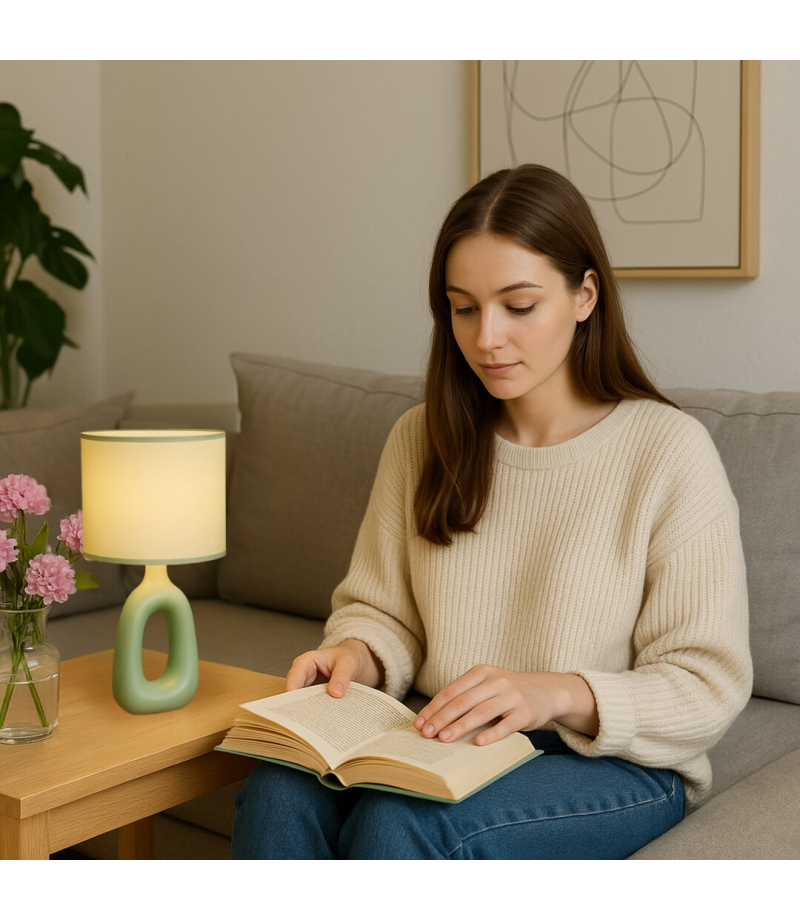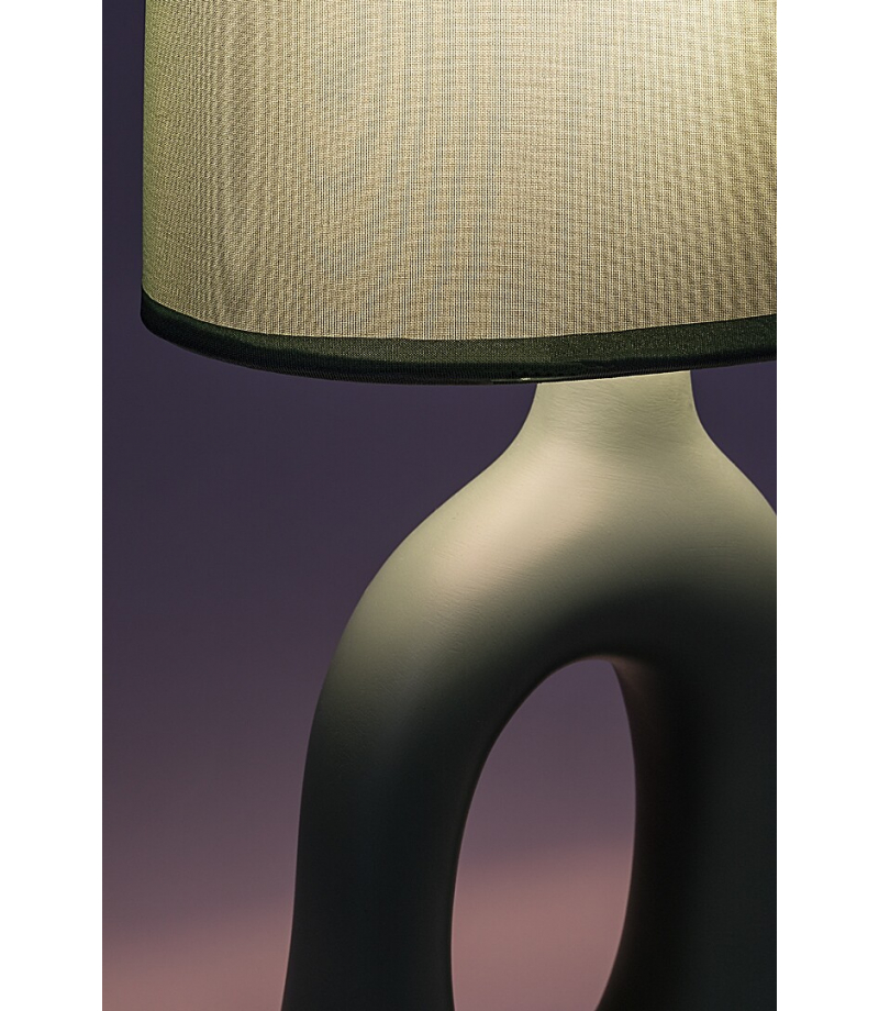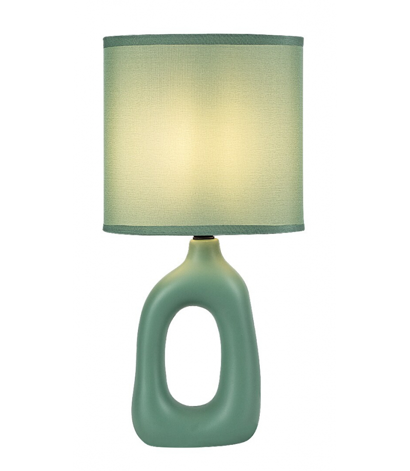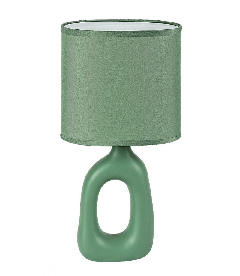 Lampa stołowa Rabalux Sylira polecana jest osobom poszukującym wyjątkowej, kolorowej lampy uzupełniającej do salonu lub sypialni. Ta nowoczesna lampka nocna charakteryzuje się oprawą z otworem pośrodku, wykonaną z zielonej ceramiki. Abażur ma cylindryczny kształt, jest otwarty u góry i u dołu, i wykonany z tkaniny w zielonym kolorze. Lampa stołowa może być używana z jedną żarówką o mocy do 40 W. Typ trzonka: E14. W zależności od gustu można wybrać źródło światła emitujące ciepłe lub naturalne białe światło. Jeśli lampa ma znaleźć się w sypialni, warto zastosować żarówkę emitującą ciepłe białe światło, które sprzyja relaksowi. Lampę można ustawić na stoliku nocnym lub dowolnym innym stole. Lampka nocna wyposażona jest w wyłącznik na kablu. Dostarczana jest bez źródła światła.