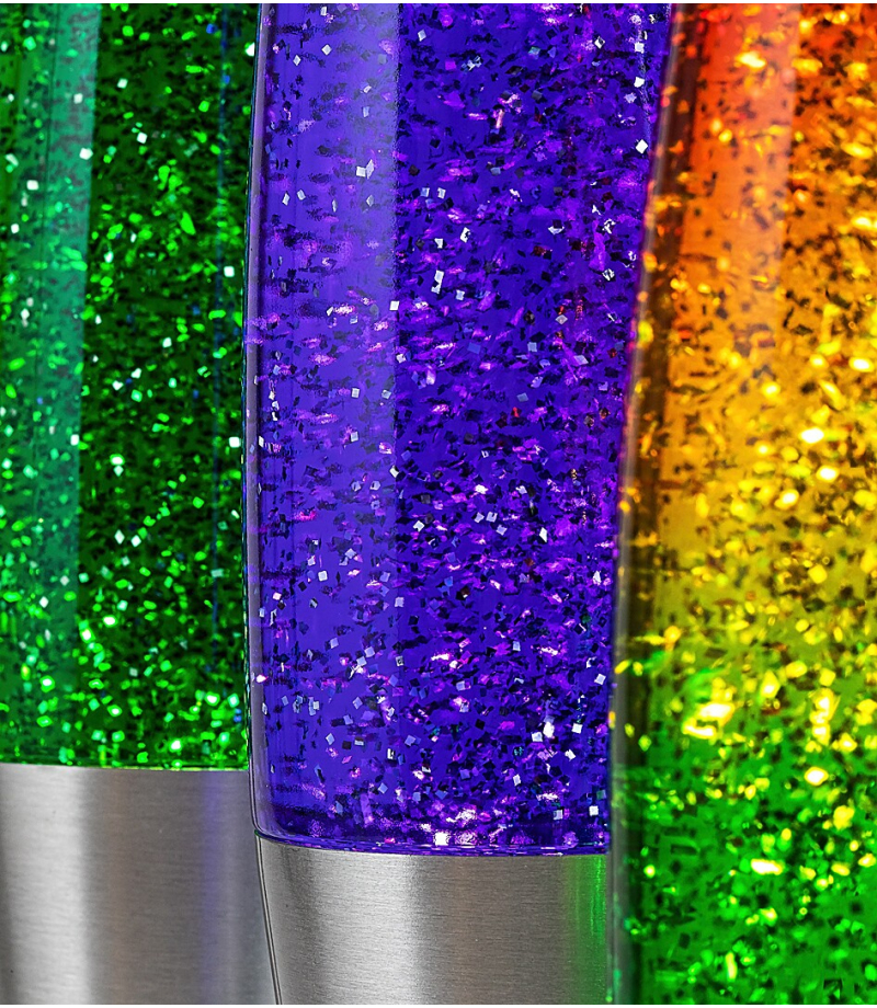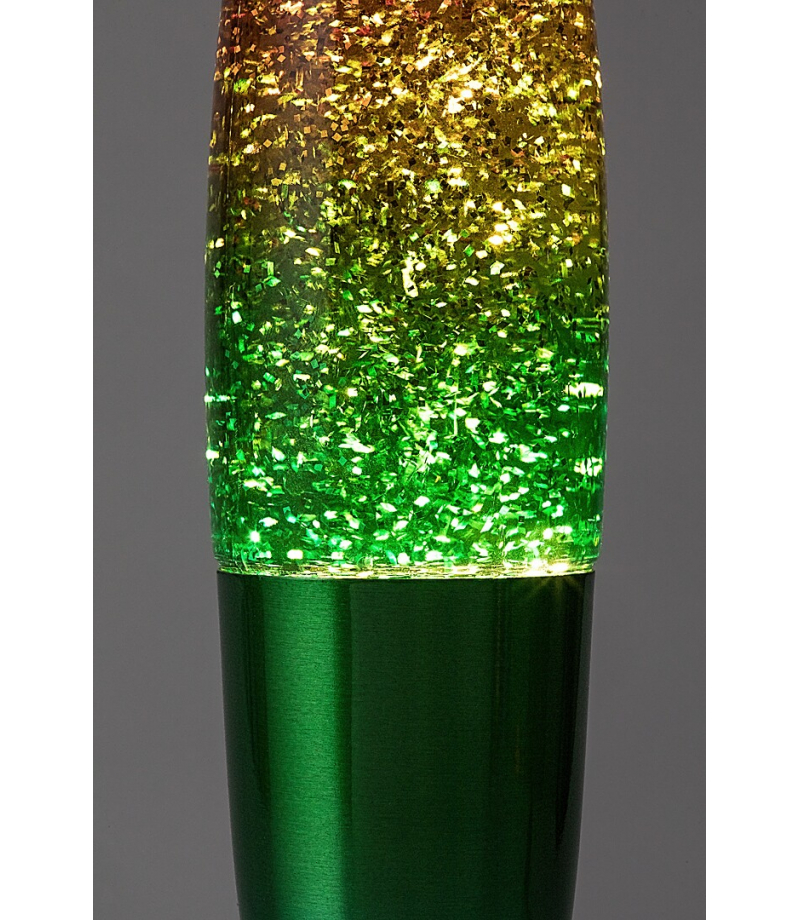 Lampa designerska Rabalux Glitter Rainbow 2 jest polecana dla osób, które kładą duży nacisk na przytulne oświetlenie w swoim domu. Spektakularna lampa lawowa ma charakterystyczny kształt przypominający rakietę. Korpus i dekoracyjna podstawa wykonane są z metalu i mają kolor tęczy. Wnętrze lampy stołowej wypełnione jest przezroczystą cieczą i srebrnym łuszczącym się miką. Te elementy są barwione przez abażur, nadając temu modelowi magiczny wygląd. Lampa dekoracyjna jest obsługiwana za pomocą przełącznika na kablu i ma wbudowane źródło światła LED, które zapewnia długą żywotność. To migoczące dekoracyjne światło z pewnością stanie się ulubieńcem całej rodziny, dlatego bardzo przydatne jest to, że można je przenosić z jednego pomieszczenia do drugiego w dowolnym czasie. Jest to idealny wybór do salonu, pokoju dziecięcego lub sypialni.