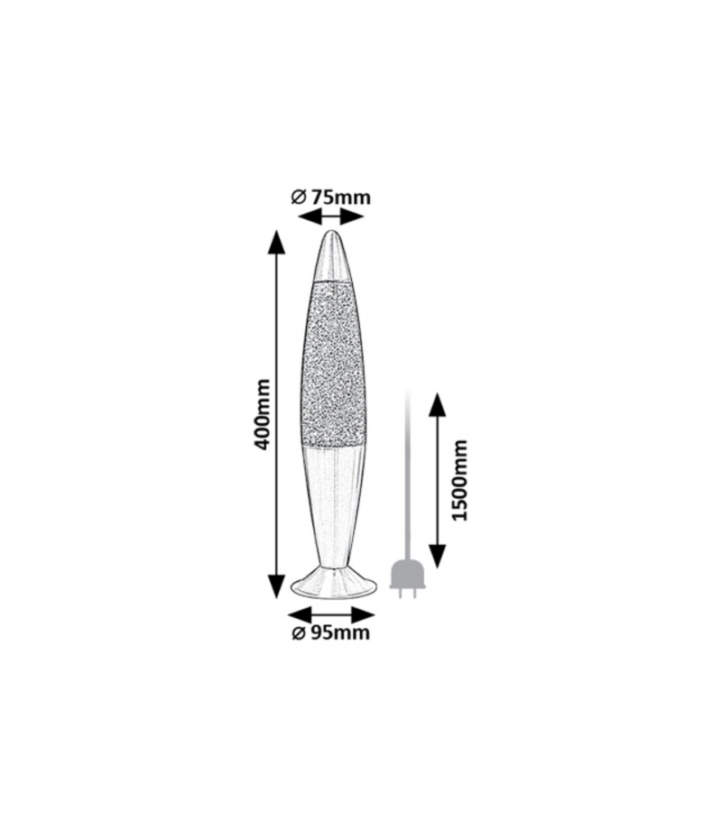 Lampa dekoracyjna Rabalux Glitter 2 jest polecana dla osób, które szukają trwałego, elastycznego i przenośnego oświetlenia nastrojowego. Model stołowy ma charakterystyczny kształt przypominający rakietę. Korpus lampy i dekoracyjna podstawa wykonane są z metalu w kolorze srebrnym, a abażur z przezroczystego szkła. Lampa lawowa jest obsługiwana za pomocą przełącznika na kablu i ma wbudowane źródło światła LED, które zapewnia długą żywotność lampy. Wnętrze eleganckiej lampy designerskiej wypełnione jest zieloną cieczą, w której unoszą się srebrne iskierki, nadając lampie magiczny, migoczący wygląd. Lampa lawowa z pewnością stanie się ulubieńcem całej rodziny, więc nie będzie łatwo zdecydować, gdzie ją postawić. Jest to idealny wybór do salonu, pokoju dziecięcego lub sypialni.