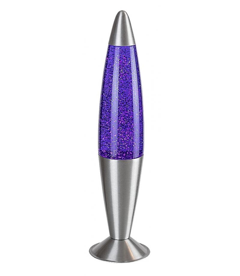 Lampa dekoracyjna Rabalux Glitter 2 jest idealnym wyborem dla osób szukających trwałego, elastycznego i przenośnego oświetlenia nastrojowego. Model stołowy ma charakterystyczny kształt przypominający rakietę. Korpus lampy i dekoracyjna podstawa wykonane są z metalu w kolorze srebrnym, a abażur z przezroczystego szkła. Lampa lawowa jest obsługiwana za pomocą przełącznika na kablu i ma wbudowane źródło światła LED, które zapewnia długą żywotność lampy. Wnętrze eleganckiej lampy designerskiej wypełnione jest fioletową cieczą, w której unoszą się srebrne iskierki, nadając lampie magiczny, migoczący wygląd. Ten model z pewnością stanie się ulubieńcem zarówno młodszych, jak i starszych członków rodziny, więc nie będzie łatwo zdecydować, gdzie ją postawić. Na szczęście możesz przenosić ją z jednego pomieszczenia do drugiego w dowolnym czasie. Polecamy ją do salonu, pokoju dziecięcego oraz sypialni.