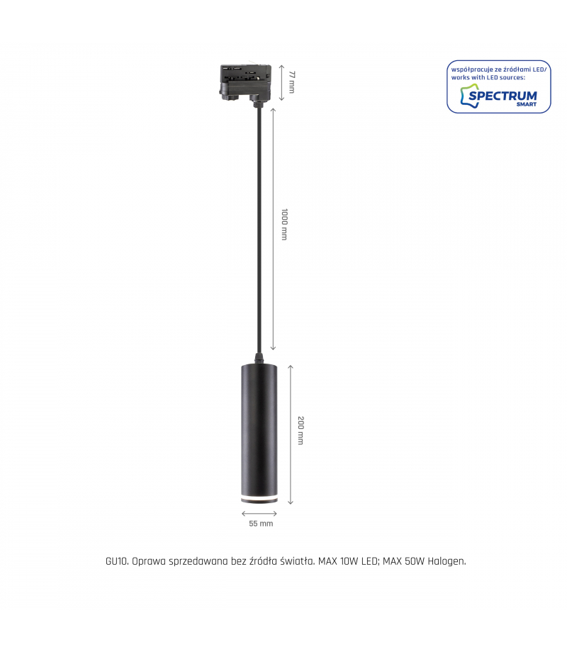 Lampa wisząca na szynoprzewód MADARA MINI RING GU10 ZWIS NA SZYNOPRZEWÓD 3F 230V IP20 fi55*200mm CZARNY kabel 1m Spectrum SLIP003021 Kolekcja: MADARA MINI Producent: SPECTRUM Zastosowanie: WEWNĘTRZNE Sposób montażu: NATYNKOWY/ZWIESZANY Klasa szczelności: IP20 Trzonek: GU10...