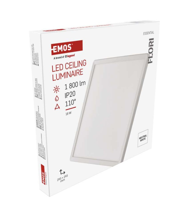 Oprawa LED FLORI kwadratowy, biała, 18W, neutralna biel EMOS ZM1402 Barwa światła: neutralna biel Częstotliwość: 50/60 Hz Czujnik ruchu: nie Do biura: nie Do kuchni: tak Do łazienki: nie Do ogrodu i na balkon: nie Do salonu, sypialni i pokoju dziecięcego: tak...