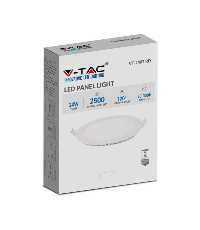 24W Panel LED / Barwa:4000K / Okrągła , Cechy produktu Moc 24W Strumień świetlny 2500 lm Barwa światła 4000K IP IP20 Kod kreskowy EAN 3800157686266 Opakowanie zbiorcze 10