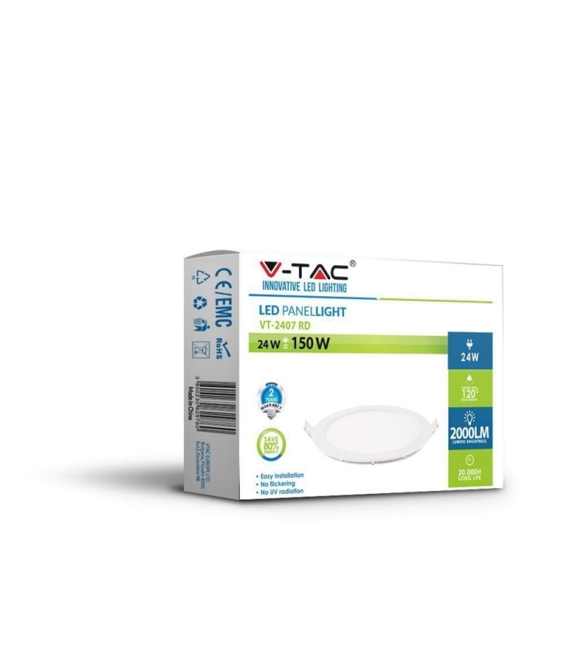 Panel LED V-TAC Premium Downlight 24W Okrągły fi300 VT-2407 6000K 2400lm Opis produktu Współczesne i Nowoczesne wzornictwo Brak tętnień Odporność na uszkodzenia Brak promieniowania podczerwonego, nie wabi insektów Łatwa instalacja Brak zawartości ołowiu i rtęci Produkt przyjazny środowisku Wybrane modele w opcji ściemniania Zastosowanie Oświetlenie biurowe Sale konferencyjne Szpitale Hotele, Bary, Restauracje Centra handlowe Salony sprzedaży itp. Oświetlenie kuchenne i...