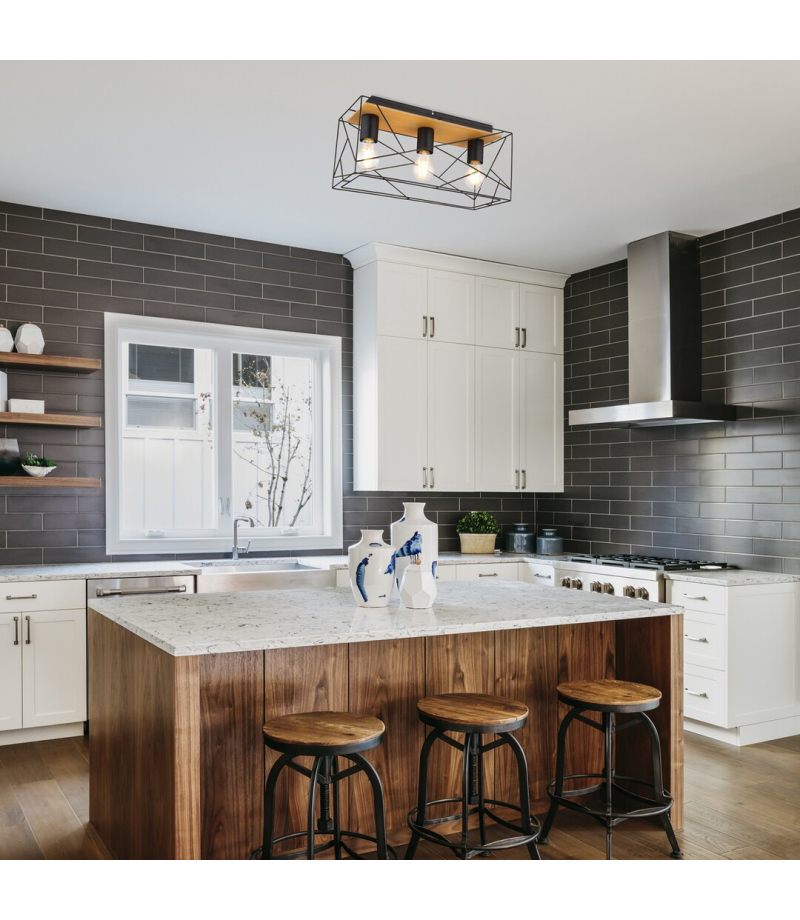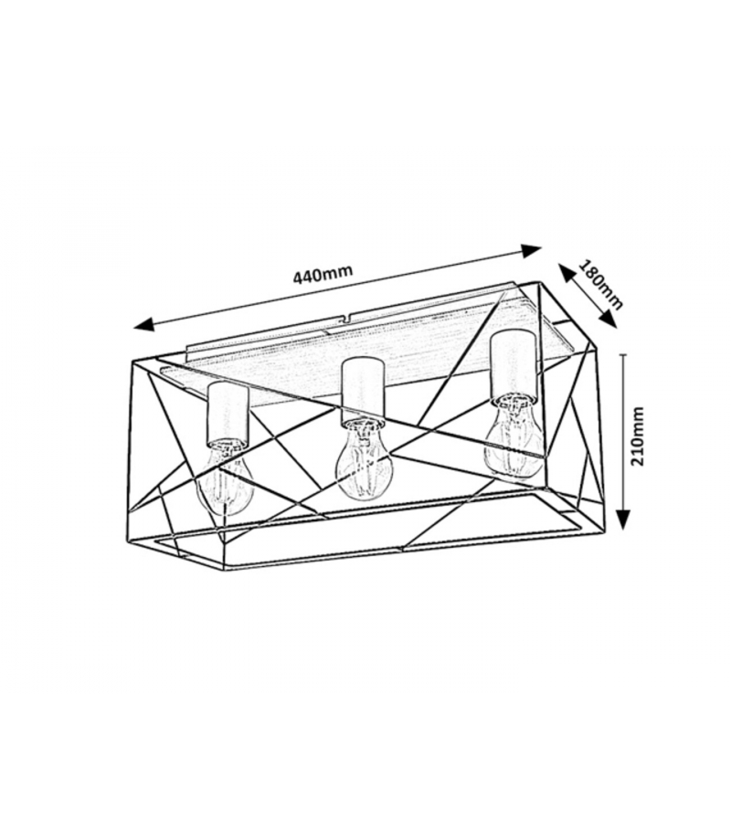 Wykonana w stylu industrialnym oprawa sufitowa Boire z trzema punktami świetlnymi może być nastrojowym dodatkiem do nowoczesnego salonu lub sypialni. Wykonany z metalu i drewna oprawa w kolorze czarnym jest uzupełniona prostokątnym kloszem, przez którą źródła światła są w pełni widoczne. Drewniana podstawa umieszczona na szczycie prostokątnej metalowej podstawy dodaje do wyglądu Boire odrobinę ciepłej nuty. Do oprawy można zastosować trzy źródła światła E27 o mocy max. 40 W każda. W zależności od upodobań i miejsca montażu można użyć źródła światła o barwie ciepłobiałej lub naturalnie białej. Jeżeli oprawa zostanie zamontowana w sypialni, warto zastosować źródła światła o ciepłobiałej barwie, które stworzą przytulną, domową atmosferę. Wymiary oprawy są następujące: szerokość 440 mm, wysokość 180 mm, odległość od sufitu 210 mm. Produkt ten jest dostarczany bez źródła światła.