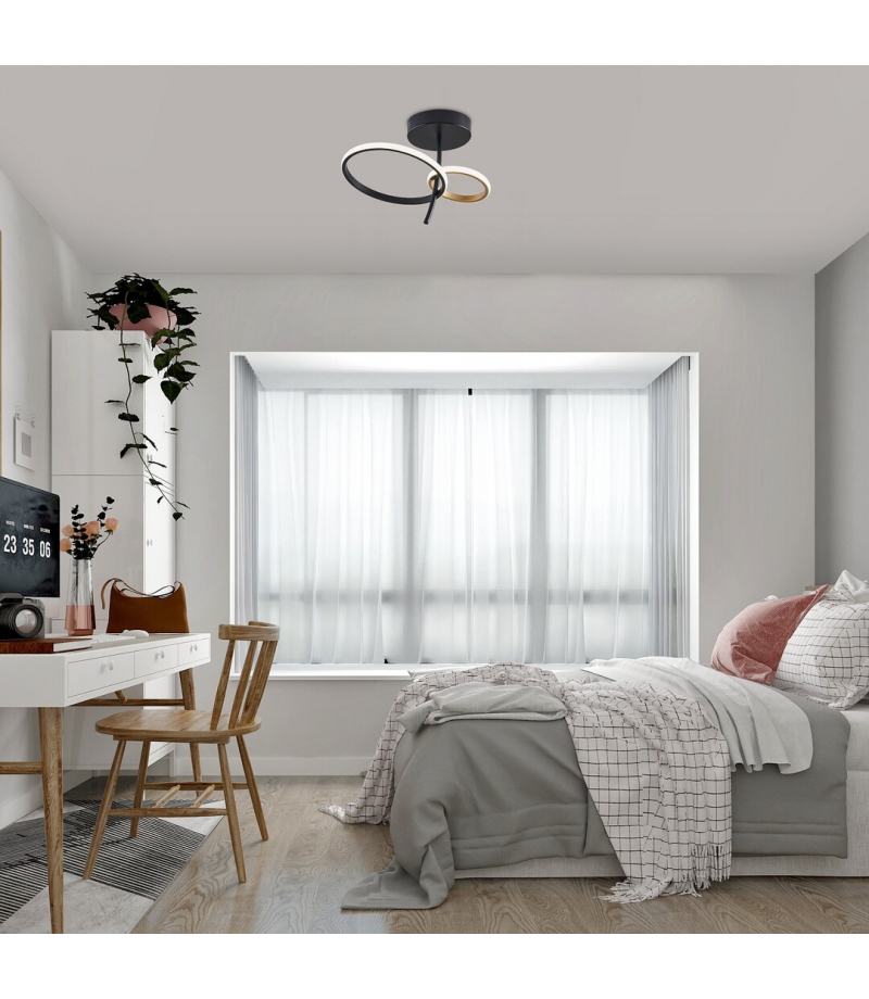Oprawę sufitową Emilion firmy Rábalux polecamy osobom, które przy wyborze oprawy kładą nacisk zarówno na kreatywny design, jak i na funkcjonalność. Ta nowoczesna oprawa sufitowa LED jest wykonana z metalu w eleganckiej czarno-złotej kolorystyce i jest uzupełniona białym kloszem silikonowym. Wyjątkowy wygląd oprawie nadają dwa okrągłe elementy oprawy o różnych rozmiarach, które są przymocowane do krótkiego pręta. Oprócz estetycznego wyglądu oprawa skutecznie zapewnia również niezbędne natężenie światła. Oprawa wisząca jest doskonałym wyborem do salonu, jadalni lub sypialni, gdzie za pomocą neutralnie białego światła stworzy nowoczesny, klarowny efekt. Dzięki zintegrowanej technologii LED oprawa sufitowa charakteryzuje się energooszczędnym działaniem i długą żywotnością.