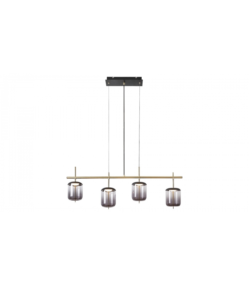 Poczwórny żyrandol Delice z połączenia metalu i szkła to wyjątkowy dodatek do nowoczesnego wnętrza Twojego domu. Niezależnie od tego, czy umieścisz go w salonie, czy w jadalni, Twoi goście na pewno zwrócą na niego uwagę. Czarno-brązową oprawę z metalu uzupełniają klosze w przydymionym odcieniu i kwadratowa, czarna podstawa ozdobna. Światło jest delikatnie filtrowane spod ciemnych kloszy Delice, które emanują wyjątkową atmosferą. Ten poczwórny żyrandol posiada wbudowane źródła światła LED o łącznej mocy 24 W, jasności 1920 lumenów i temperaturze barwowej 4000 K. Źródła światła emitujące naturalne białe światło należą do klasy energetycznej A. Wymiary tego żyrandola Delice są następujące: 950 mm s i średnicy i 1500 mm odległości od sufitu. Ten spektakularny model jest objęty 5-letnią gwarancją.