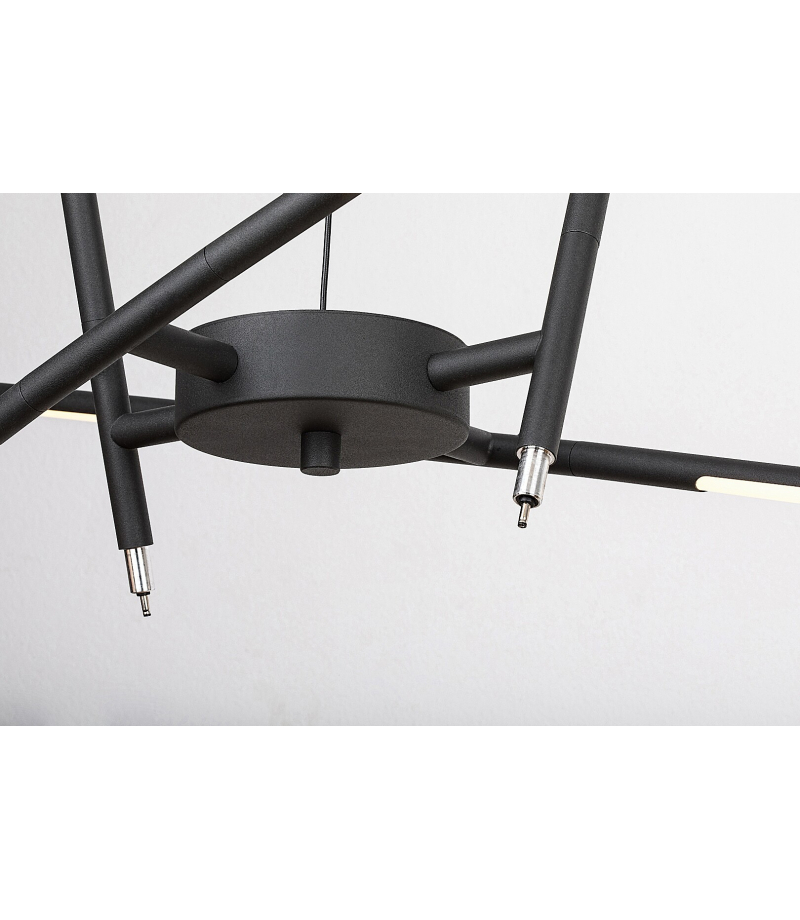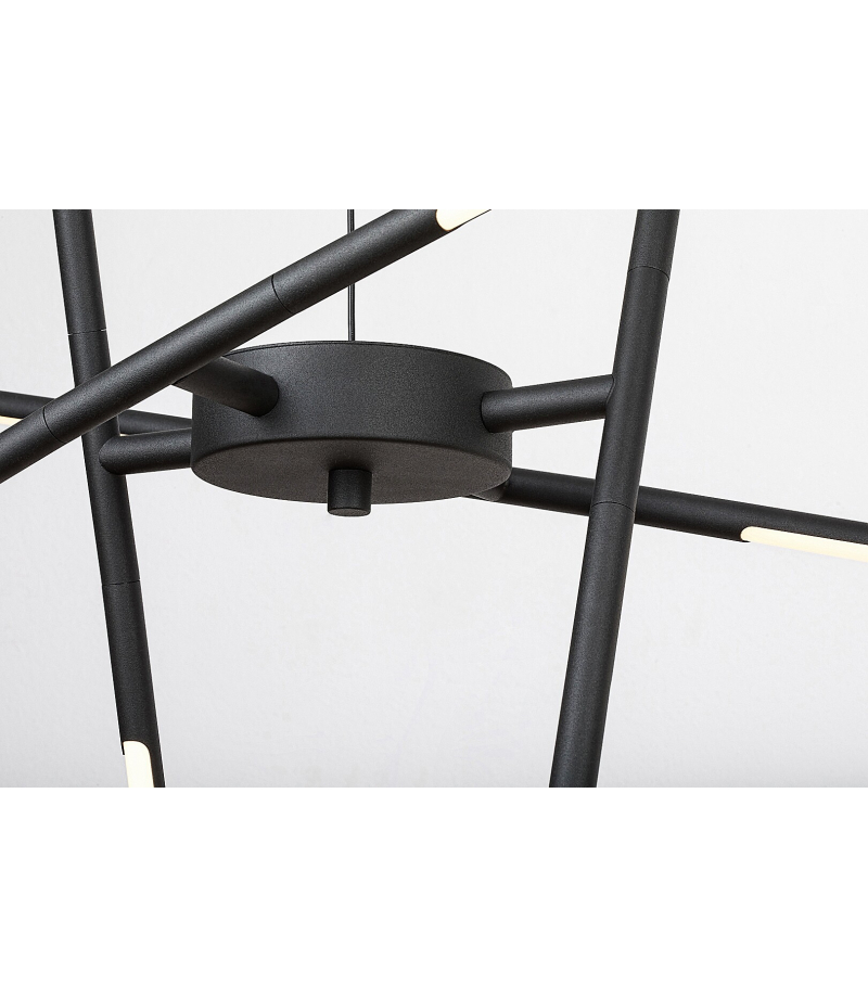 Unikalne wzornictwo wykonanej w nowoczesnym stylu oprawy wiszącej Henli sprawia, że może ona stać się charakterystycznym elementem wyposażenia salonu, jadalni lub sypialni. Ten spektakularny model składa się z przecinających się elementów prętowych, które można obracać, zmieniając ogólny efekt według własnych upodobań. Wykonana z metalu oprawa w kolorze czarnym jest uzupełniona białym kloszem akrylowym i może być przymocowana do sufitu za pomocą okrągłej podstawy dekoracyjnej. Oprawa Henli posiada wbudowane źródło światła LED klasy energetycznej G o mocy 30 W, strumień świetlny z kloszem - 1400 lumenów, bez klosza - 3850 lumenów. Trwałość źródła światła wynosi 20.000 godzin. Źródło światła o temperaturze barwowej 3000K świeci ciepłym białym światłem, które jest relaksujące dla oczu, idealne do relaksu i wypoczynku i tworzy przytulną, miłą atmosferę. Wymiary oprawy wiszącej Henli są następujące: średnica 760 mm, zwis regulowany w zakresie od 400 do 1500 mm, średnica otworu montażowego 150 mm.
