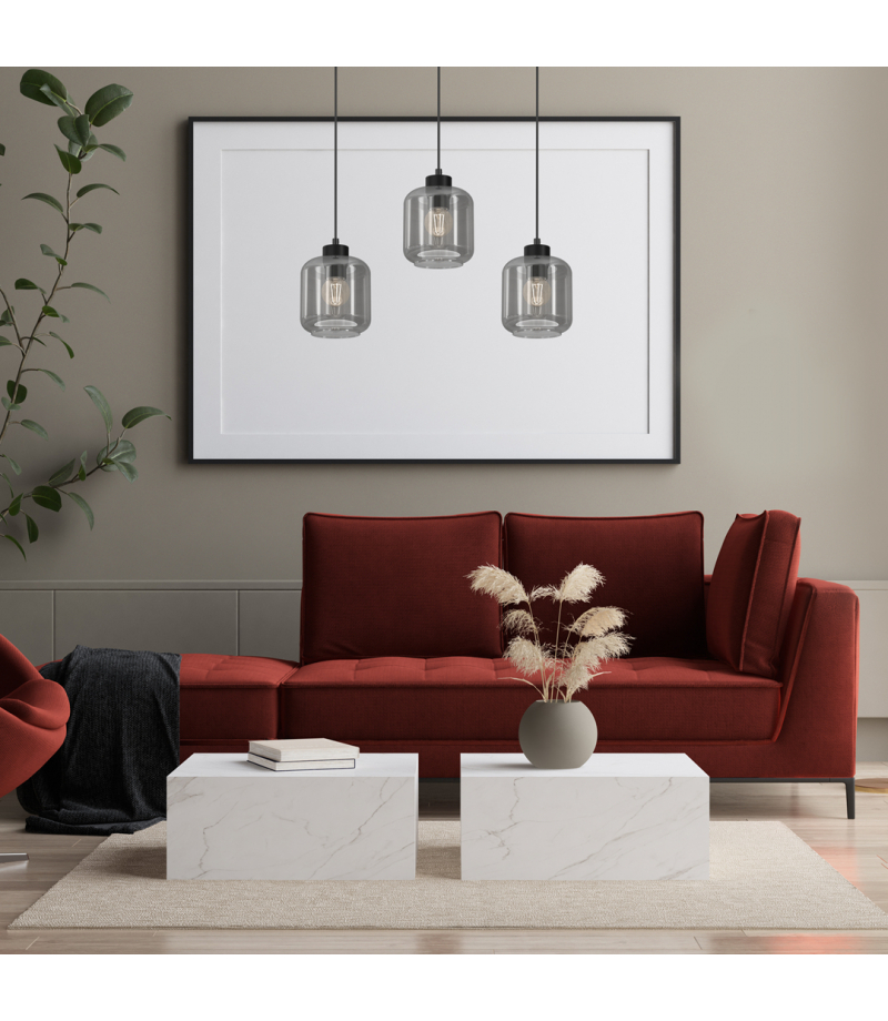 Lampa wisząca SOMBRA SMOKED 3xE27 Milagro MLP8374 Zwisające klosze w dymionym wybarwieniu z czarnym wykończeniem to ciekawa alternatywa dla bardziej stonowanych i jednolitych propozycji oświetlenia do biura lub mieszkania. Do lamp pasują żarówki led E27 z dużym gwintem. W ofercie dostępne są lampy z symetrycznym ustawieniem kloszy lub takie, które mają je ustawione nieregularnie - niektóre są dłuższe, inne krótsze. Czarne wykończenie sprawia, że lampy będą...