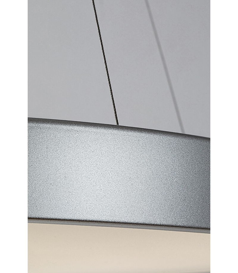Duża, okrągła oprawa sufitowa Tesia jest polecana osobom poszukującym prostego, a zarazem wydajnego i trwałego modelu do swojego nowoczesnego salonu lub sypialni. Ta oprawa o cienkiej konstrukcji jest praktyczna i dyskretnie wtapia się w przestrzeń, a jednocześnie przez długie lata zapewnia niezawodne pomieszczenia. Wykonana z metalu oprawa w kolorze srebrnym jest uzupełniona białym kloszem z tworzywa sztucznego. Oprawa Tesia posiada wbudowane źródło światła LED o mocy 60 W, strumieniu świetlnym z kloszem - 3500 lumenów, bez klosza - 4800 lumenów. Trwałość źródła światła jest fantastyczna: 50.000 godzin! Istnieje możliwość regulacji temperatury barwowej źródła światła w zakresie od 3000 do 6000K, co oznacza, że może emitować ciepłobiałe, naturalne lub zimnobiałe światło. Oprawa oprócz tego jest ściemnialna, czyli ma regulowaną jasność, a także posiada funkcję pamięci i światła nocnego. CRI (wskaźnik oddawania barw) oprawy Tesia jest powyżej 80%, co jest uznawane za wyjątkowo wysokie. Średnica oprawy sufitowej wynosi 600 mm, średnica otworu montażowego 100 mm, a odległość od sufitu zaledwie 1200 mm.